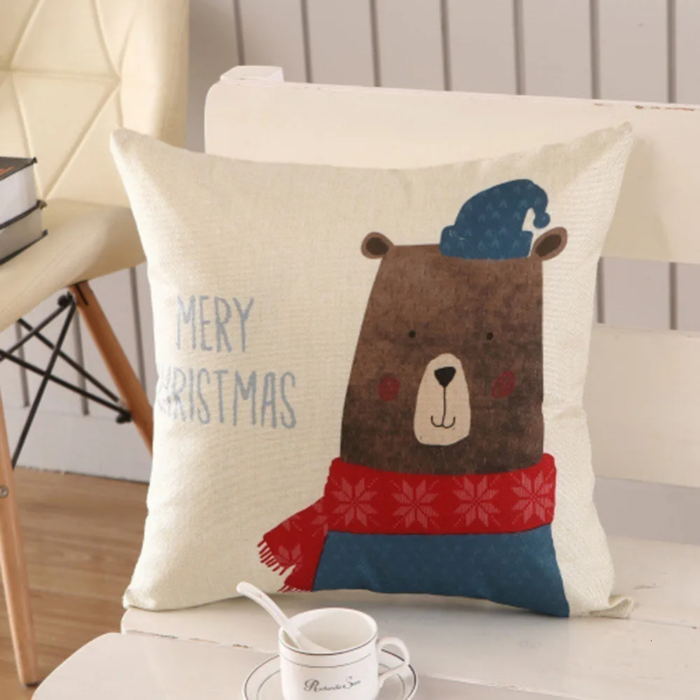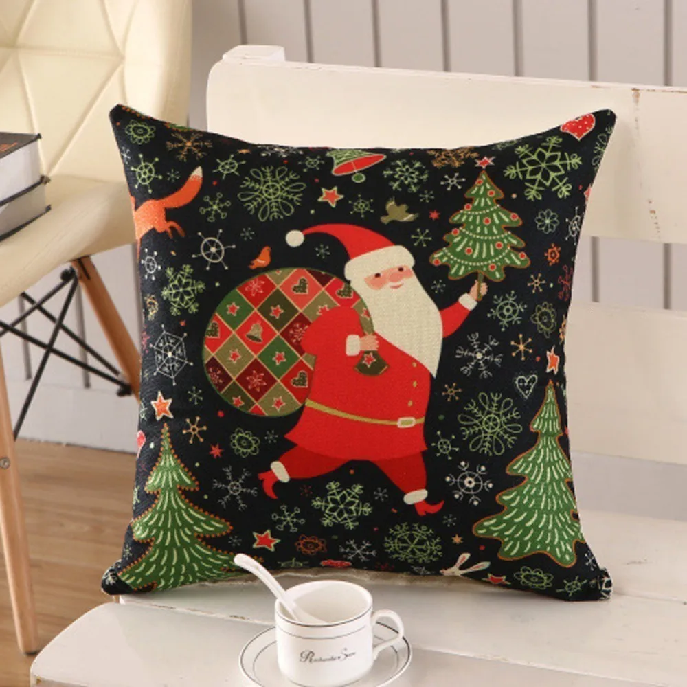 1 шт 45*45 см счастливого Нового года рождественские украшения для дома Мультфильм Льняные декоративные подушки крышка Navidad Natal