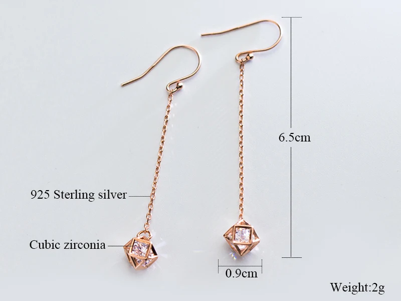 Серьги из стерлингового серебра 925 пробы, 3D кубик, розовое золото, прозрачные циркониевые серьги, квадратные полые женские модные ювелирные изделия, оптовая продажа