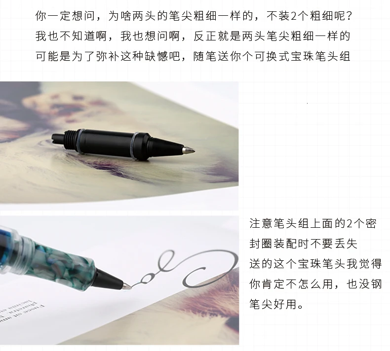 2. Поскольку размер наконечника ручки на роликах маленький, чернила медленно выйдут, поэтому они немного высохнут, потому что они недостаточно влажные, но после периода использования, он будет гладким. Наконечник ручки-Роллер просто для вас, чтобы добавить удовольствие, Пожалуйста, используйте авторучку в качестве основного.