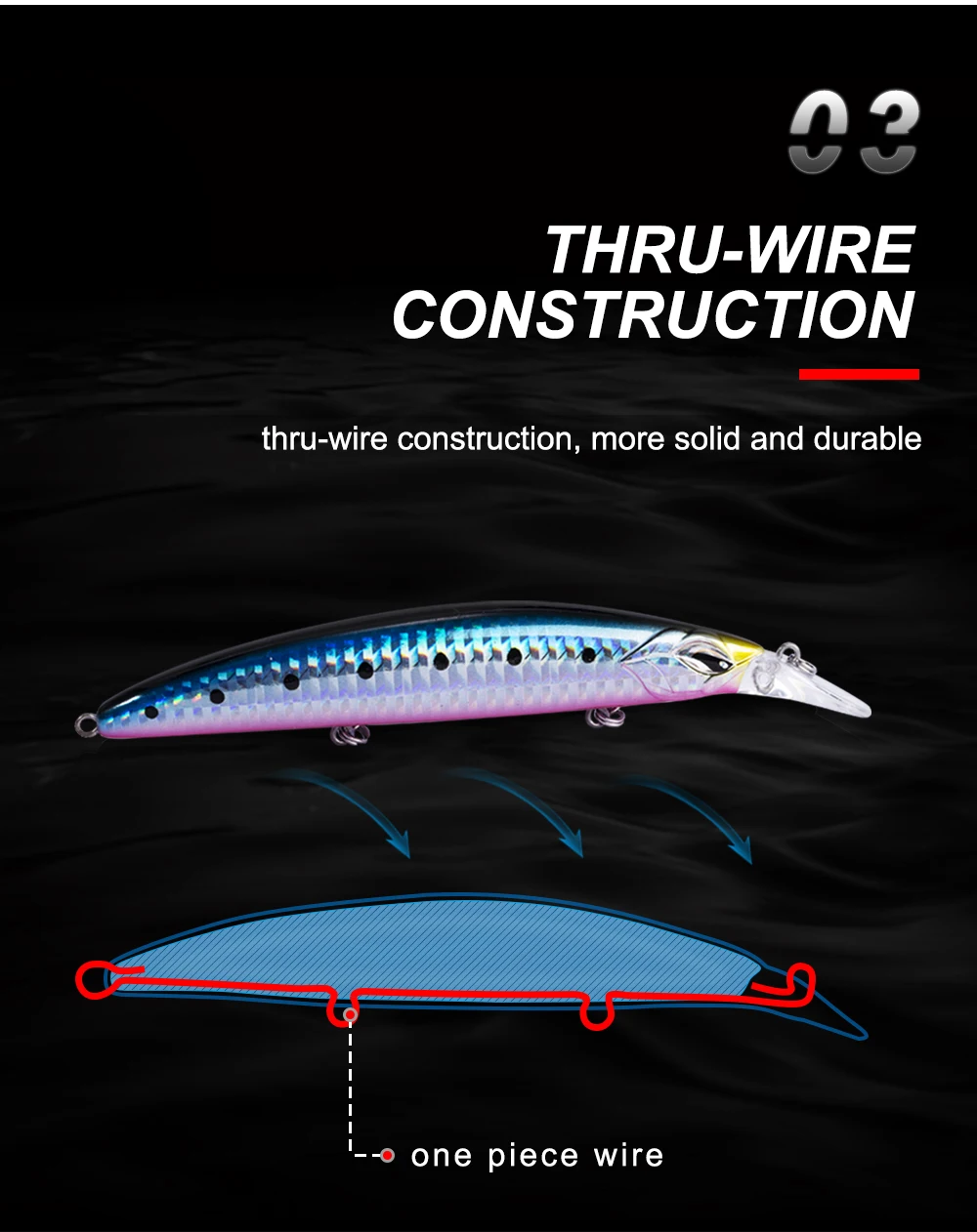 3.Соединенный провод из нержавеющей стали, Оснащенный 3 раза укрепить sharp и прочный Япония Крючки Тройные из-за супер напряжение.