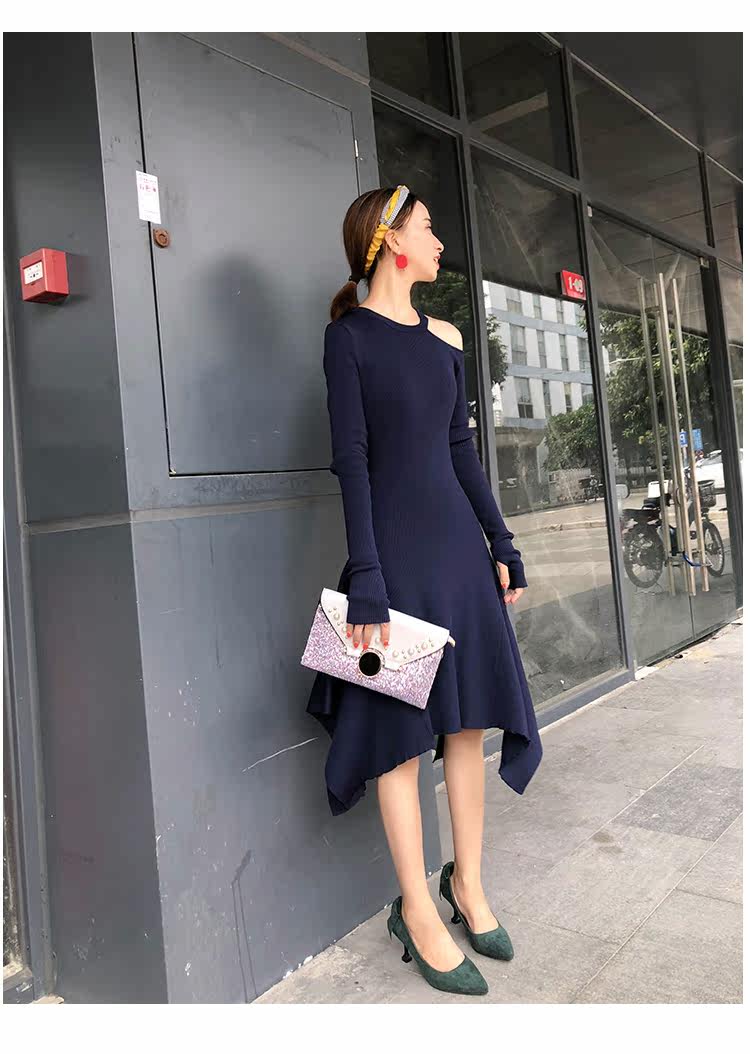 Женское трикотажное платье с круглым вырезом и коротким рукавом, трикотажное платье-свитер длиной до колена, весна 2019 US $46,13 /Шт.