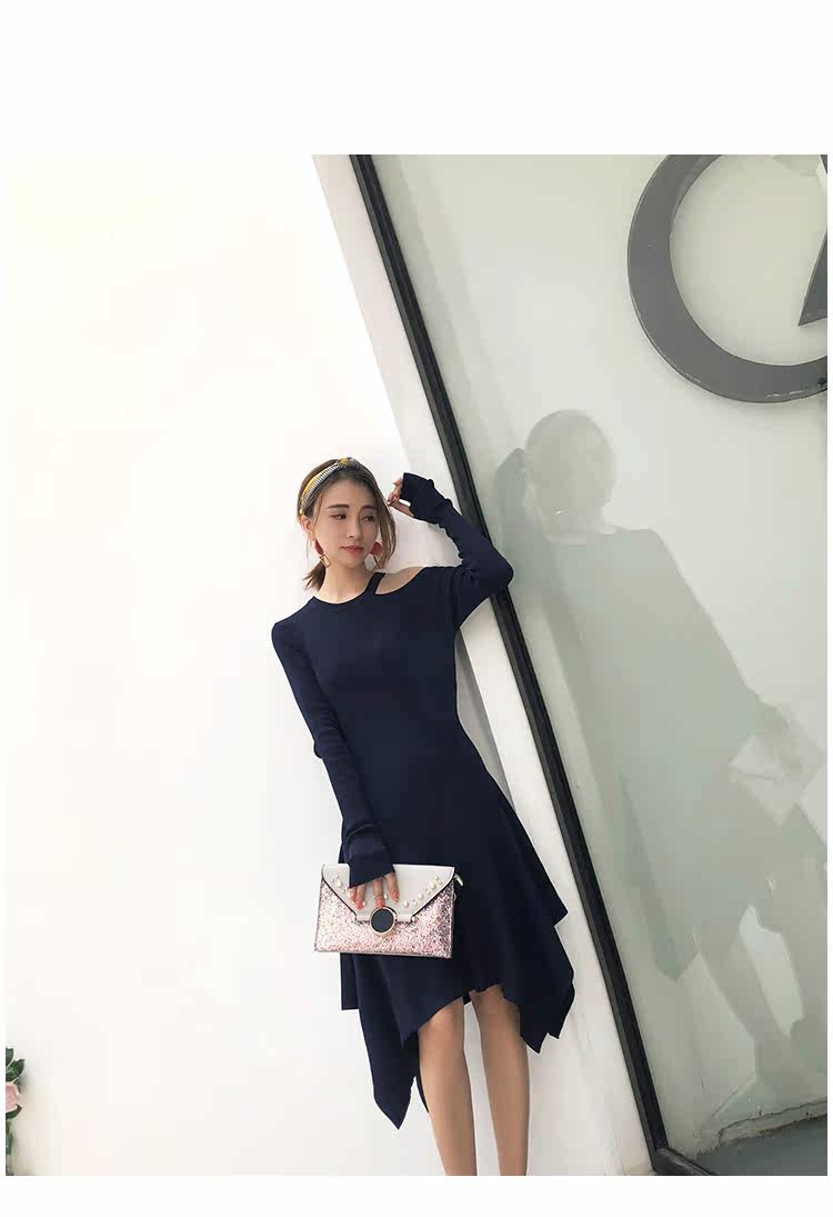 Женское платье-свитер с длинным рукавом, черное трикотажное платье с аппликацией и жемчужинами, весна 2019 US $46,95 /Шт.
