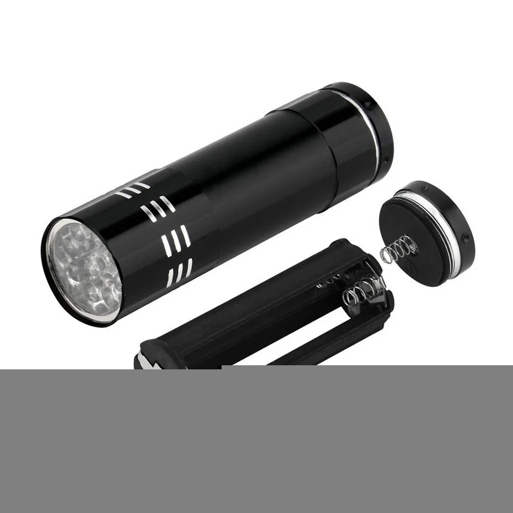 Мини алюминиевый УФ ультрафиолетовый 9 светодиодный фонарик Blacklight фонарь лампа Черная