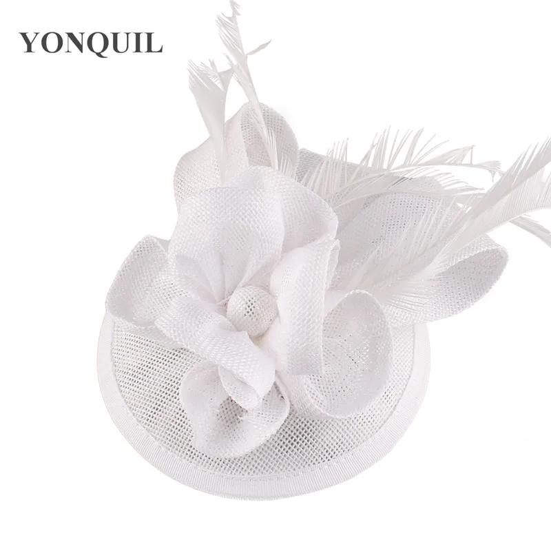 Элегантной невесты сетка различных мероприятий и головной повязкой с пером Имитация Ткань Sinamay Свадебные Церковь Головные уборы Для Свадебные аксессуары для волос