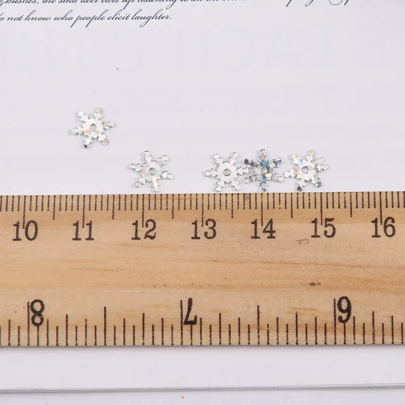 Состояние: 100% новое. Материал: ПВХ. Форма: снежинка Размер изделия: приблизительно 8-10 мм диаметр Размер отверстия: около 1,0 мм Диаметр. 1 дюйм = 25,4 мм или 1 мм = 0,0393 дюймов Цвет: белый/AB прозрачные цвета, как на фото. Упаковка: белая сумка на молнии и пузырчатая сумка, мы заботимся о упаковке Упаковка: Вы получите 10 г блесток за лот по прайс-листу.