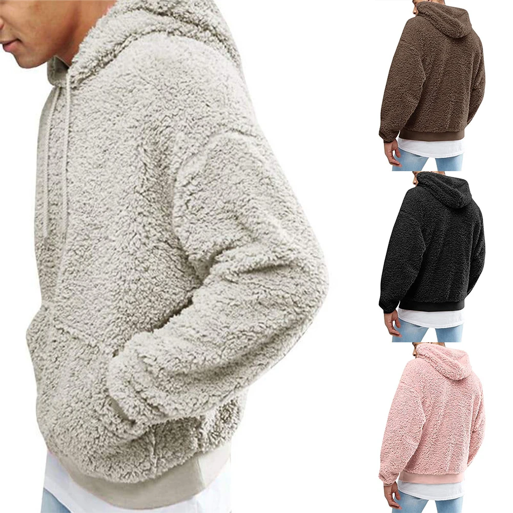 Мужская плюшевая толстовка с капюшоном, однотонная Повседневная Толстовка с длинными рукавами на осень