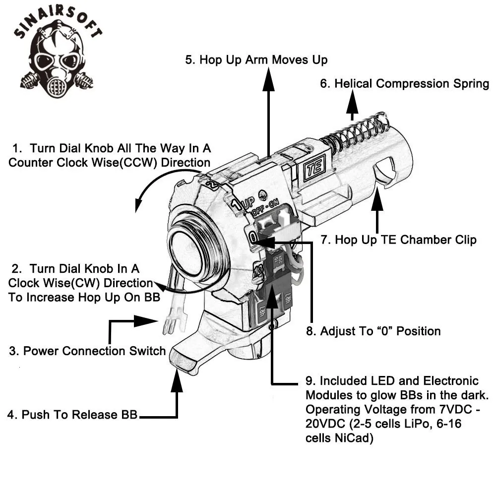 Предназначен для страйкбола серии M4 / M16 AEG. Система блокировки BB предназначена для предотвращения выпадения журнала, а затем падения BB. После повторной вставки журнала защелка полностью открывается для быстрой съемки. Вы также можете вручную открыть защелку, чтобы вручную выпустить BBs из камеры Hopup. Изготовлен из прочных авиационных алюминиевых блоков с жесткими допусками для более высокой точности, последовательности и долговечности Встроенная ручка для точной регулировки (с использованием R-hop, Flat-Hop и Standard-Hop) Съемный латунный резьбовой штифт для регулировки и обслуживания Принимает различные герметичные насадки от 20,50 мм до 21,00 мм Полностью совместим с большинством послепродажных мягких и твердых резиновых, без потери кадров в секунду или падения BB Оснащен 3 уплотнительными кольцами и 3 компрессионными пружинами, чтобы гарантировать, что Перемычка всегда точно центрируется, прямая и герметичная Совместимость с любыми коробками передач V2 с отверстием 11 мм или 12 мм Светодиодный модуль и электронные модули светятся в темноте. Рабочее напряжение от 7VDC - 20VDC (2-5 ячеек LiPo, 6-16 ячеек NiCad)