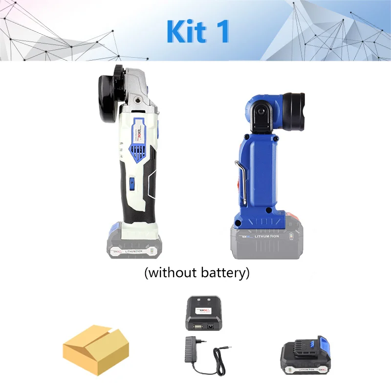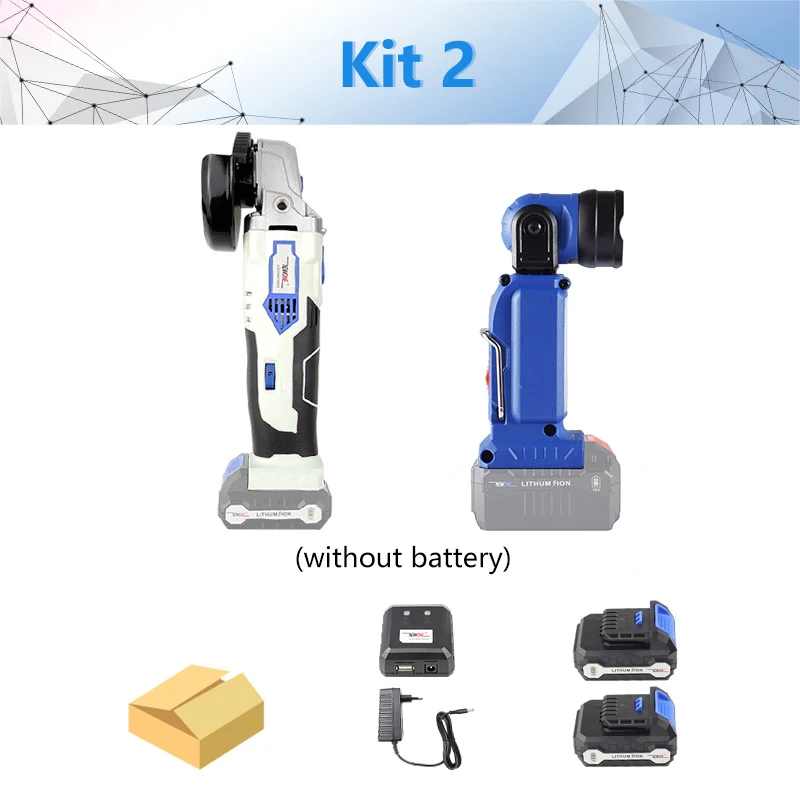 Комплект 2: 1 угловая шлифовальная машина + 1 фонарик + 2 аккумулятора 2000 мАч + быстрое зарядное устройство