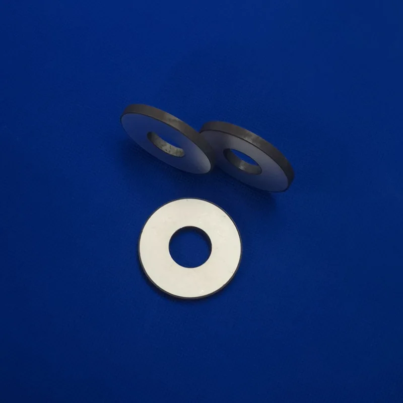 Пьезоэлектрическое керамическое кольцо с серебряными электродами с обеих сторон.