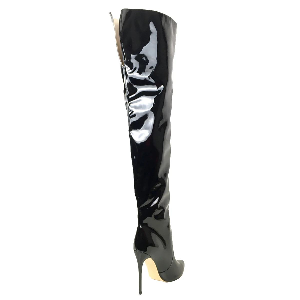 Женские сапоги с острым носком на высоком каблуке; Сапоги выше колена; Цвет Черный; Лакированная кожа; Цвет розовый; Искусственная кожа; Сезон зимаДамыВечерние длинные сапоги под платье