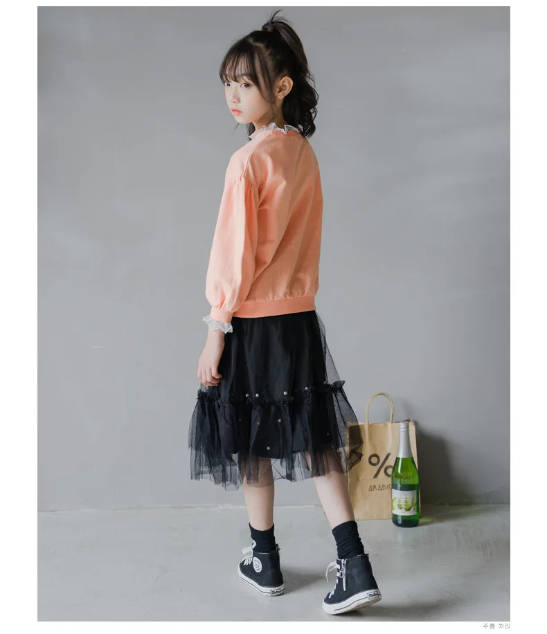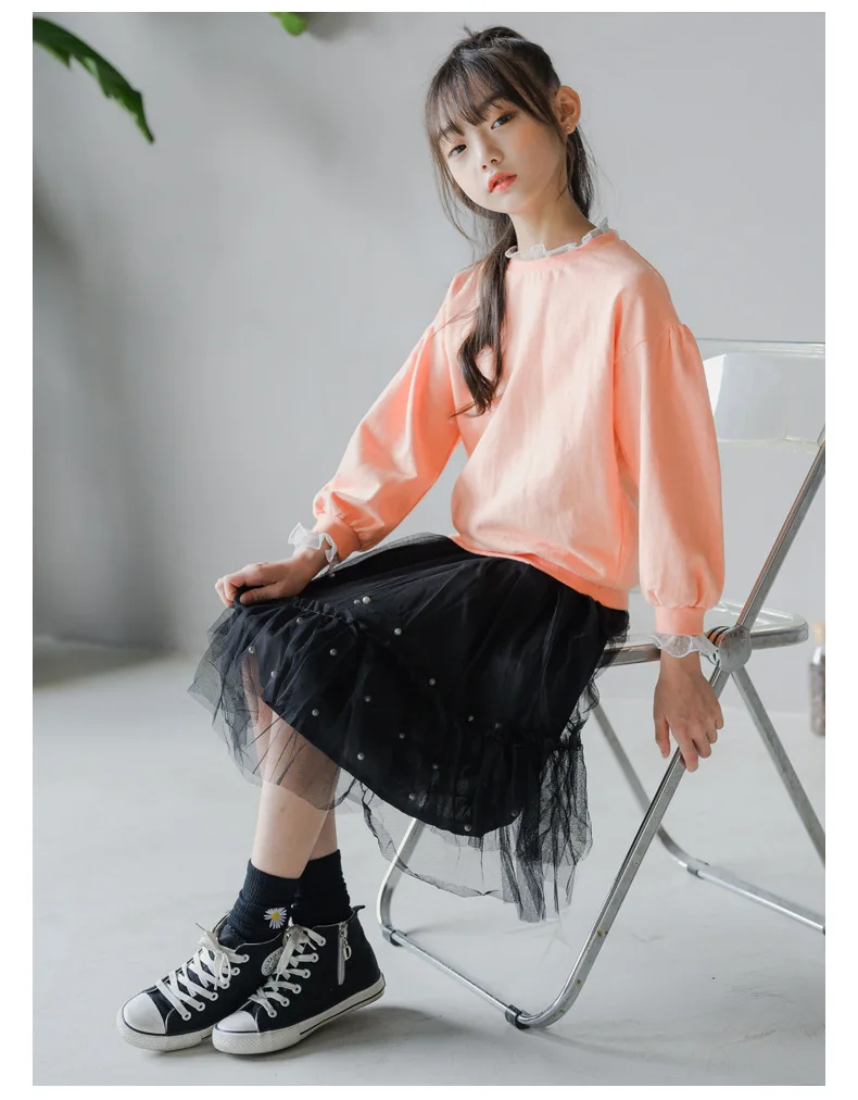 Комплект одежды для девочек, топы на осень + юбка-пачка из бисера, сетчатые Юбки Комплекты из 2 предметов Модный повседневный костюм с длинными рукавами для подростков 6, 8, 10, 12, 14, 16 лет
