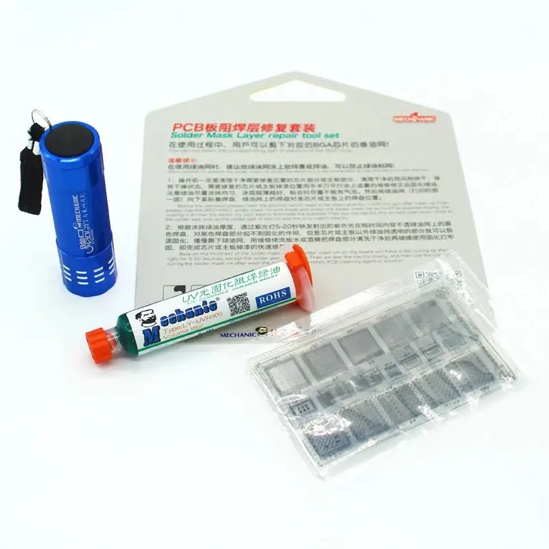 1.UVH-900 мачты для припоя * 1 (шесть цветов можно выбрать зеленый, синий, красный, черный, желтый, белый) 2.efix IP BGA трафареты * 8 3. Фонарик * 1 Примечание: Новая и старая упаковка Случайная Доставка