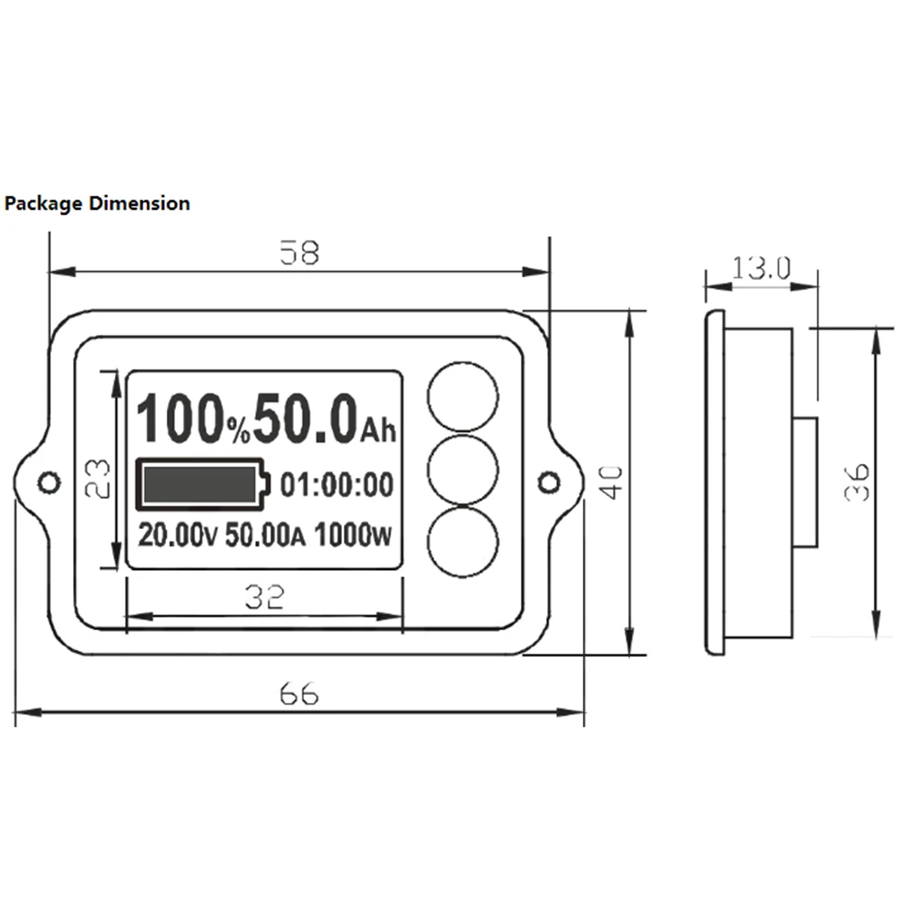 Обзор: TK15-это новый тип высокоточной емкости для сбора тока, показывающий параметры инструмента, который совместим с литиевой батареей, литиевыми фосфатными батареями железа, свинцово-кислотными батареями и никель-металлическими гидридными батареями, далее-кулометр. Он может собрать рабочее состояние батареи в любое время. Он имеет различные искажения, такие как широкий диапазон рабочего напряжения, низкая мощность, высокая точность в указании. Он может устанавливать грузоподъемность и другие параметры батарей произвольно, а также с автоматической функцией памяти при отключении питания. Описание: Тип: тестер батареи Модель: TK15 Диапазон рабочего напряжения: DC8-80V Ток: 100a Общий размер: 66x40x10мм Размер области дисплея: 32x23мм Внешний стандартный размер образца: 23x18x5мм Технические параметры: Рабочая Потребляемая мощность: 8,0 мА (макс.: 10,0 мА) Потребляемая мощность в режиме ожидания: 0,5 мА (макс.: 0,8ма) Потребляемая мощность сна: 50uA (макс.: 60uA) Точность сбора напряжения: +/-1.0% Точность приобретения тока: +/-1.0% Использование температуры окружающей среды: 0-35C Подсветка на токе: 40 мА (макс.: 50 мА) Ток выключения подсветки: 30 мА (макс.: 40 мА) Значение настройки емкости аккумулятора: 0.-590A Внешний нормальный пробоотборник Рабочий ток: 30.0A (макс.: 50A) Внешний большой пробоотборник Рабочий ток: 50.0A (макс.: 100A) Внимание: минимальное напряжение аккумуляторной батареи должно быть выше минимального рабочего напряжения кулометра Особенности: 1. Пустое и полное напряжение батареи можно отрегулировать 2. Подсветка автоматически открывается при использовании 3. Автоматическая функция памяти при отключении питания 4. Быстрая скорость отклика 5. Низкое энергопотребление, автоматическое Пробуждение Дисплей: 1. Остаточная емкость батареи (Ah или mAh) 2. Процент емкости и отображение тотемных полюсов 3. Напряжение батареи 4. Ток батареи 5. Порошковый выход 6. Оставшееся время зарядки и разрядки