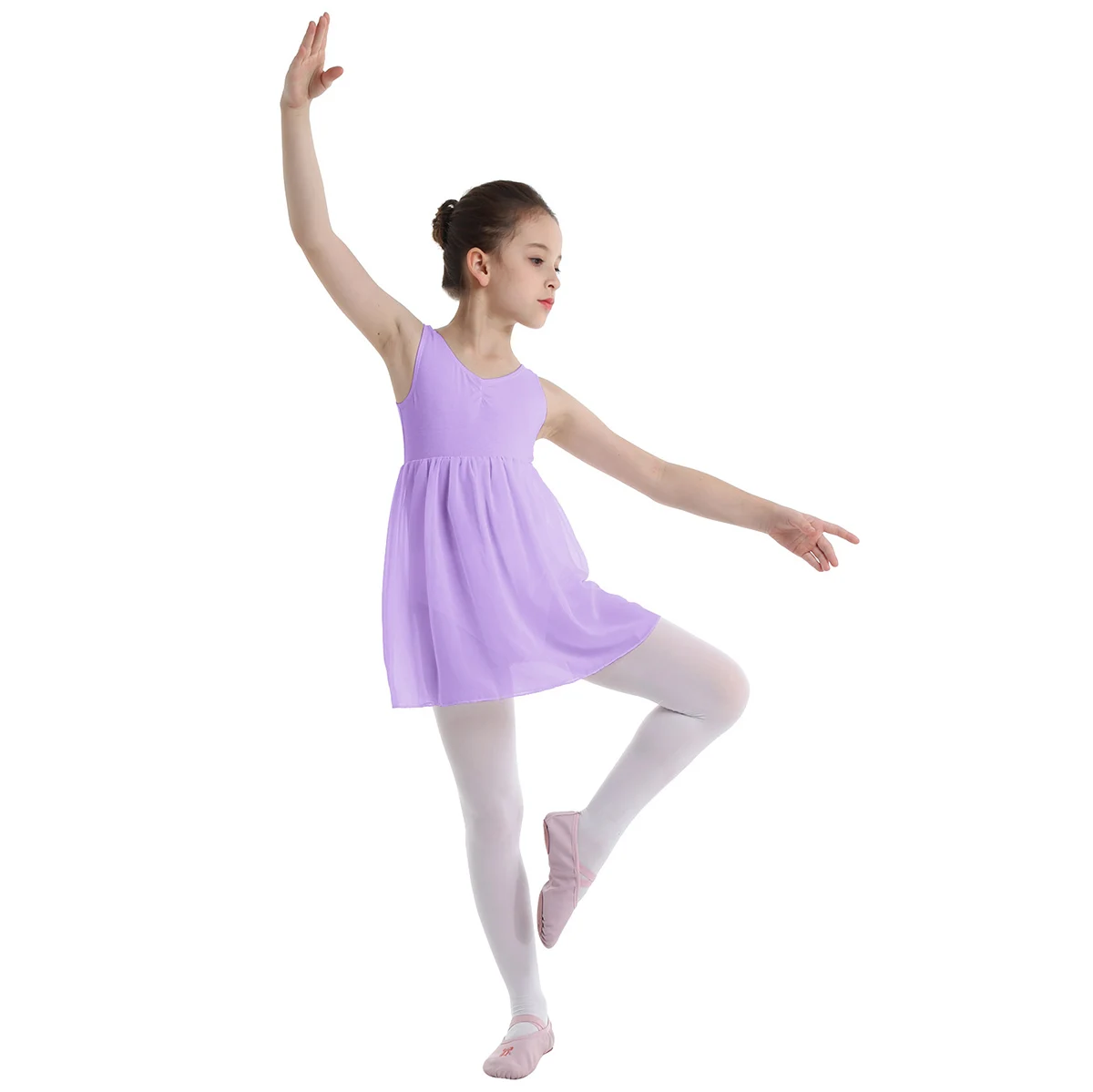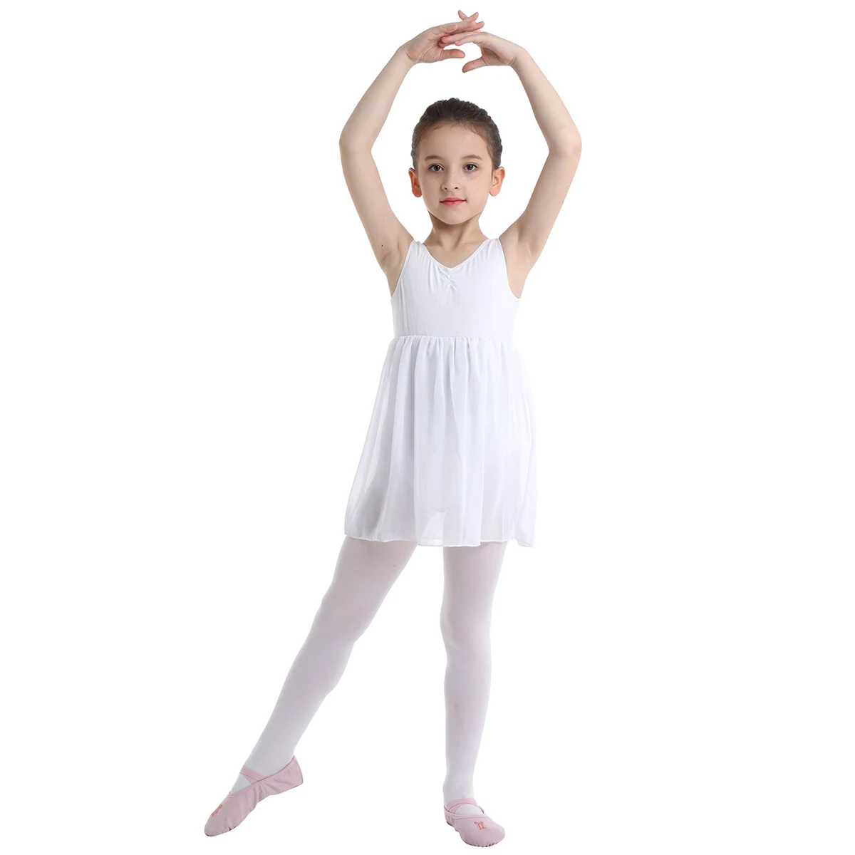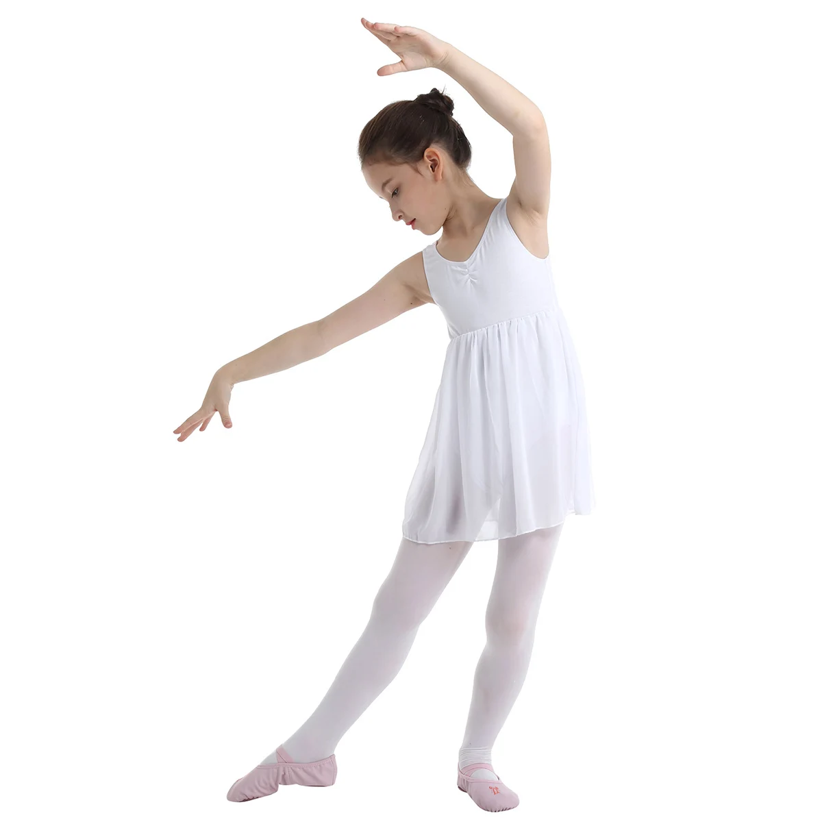 # XS-XXL; Детское хлопковое шифоновое платье без рукавов для балета; Гимнастическое трико; SZ 2-10