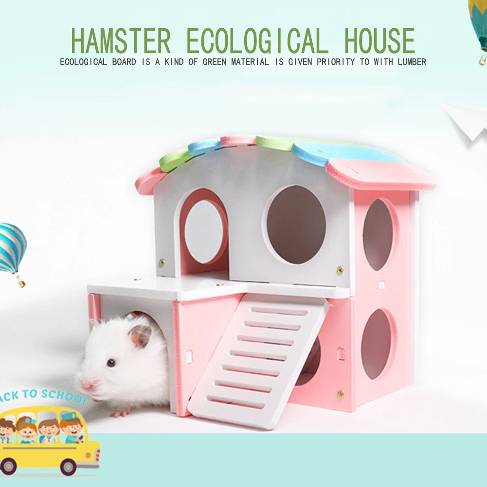 Деревянный хомяк чистая экологическая двухэтажная лестница вилла зимняя теплая цветная доска Кровать Дом
