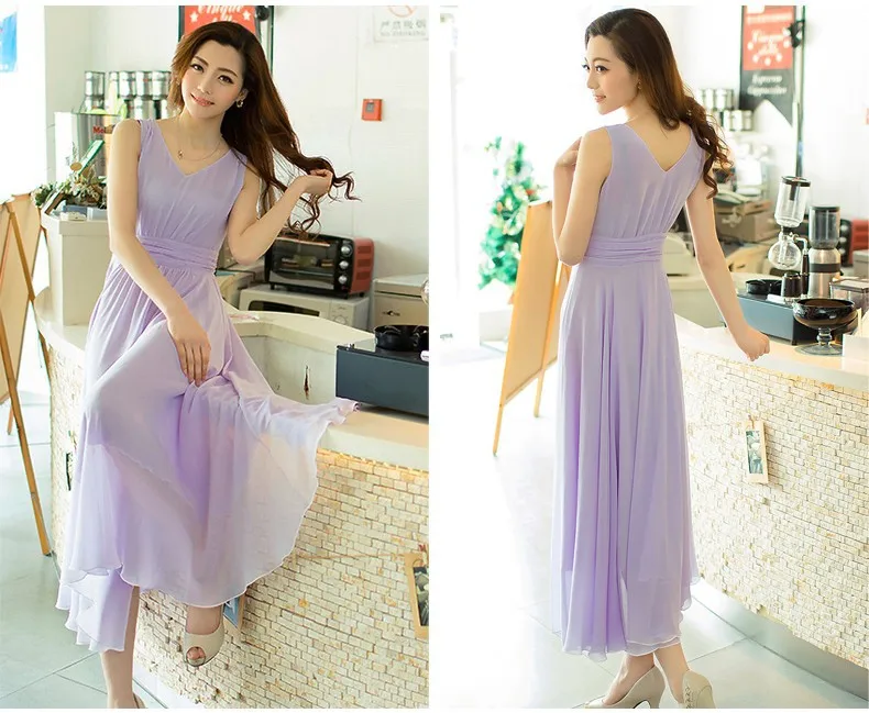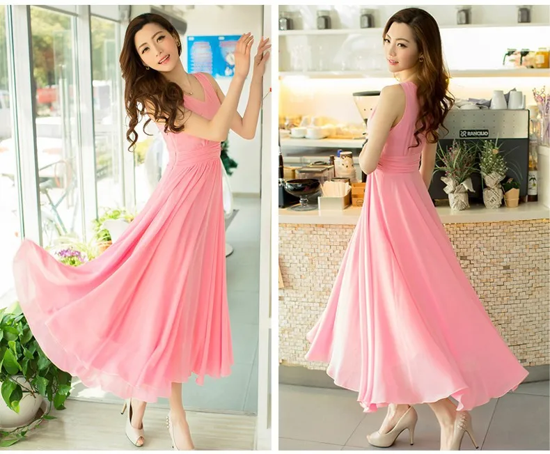 Женский Летний шифон без рукавов однотонное длинное платье сексуальное с v-образным вырезом тонкое пляжное макси платье S-XXL богемное длинное платье