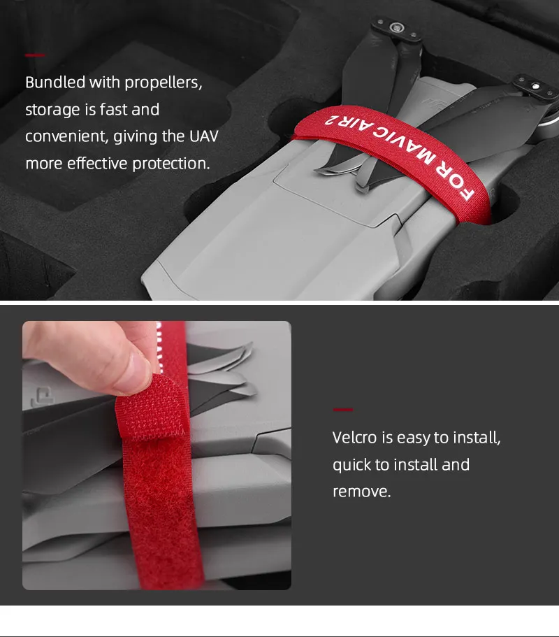 2. Закрепите пропеллер на фюзеляже, чтобы эффективно предотвратить повреждение лезвий во время хранения,