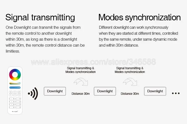 Miboxer downlight может управляться через Milight handy remote (FUT096, FUT092, FUT088, FUT089, B8, B4/T4, B3/T3, B0.), Или APP & Third вечерние Google Home / Amazon Alexa Голосовое управление (необходимо использовать с WL-box1.)
