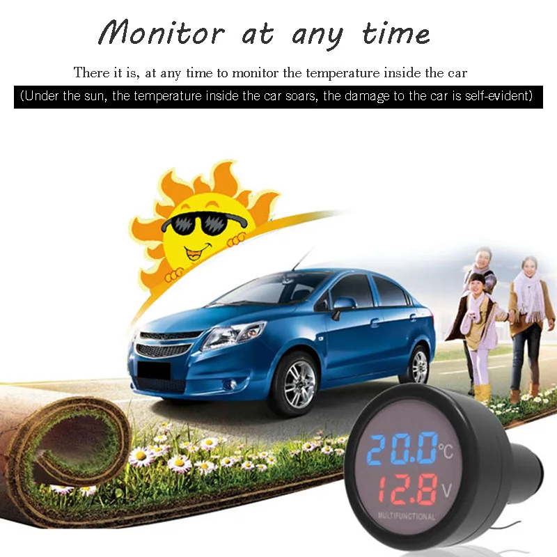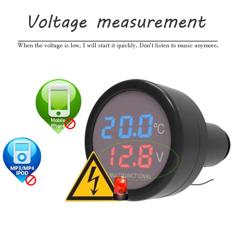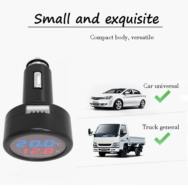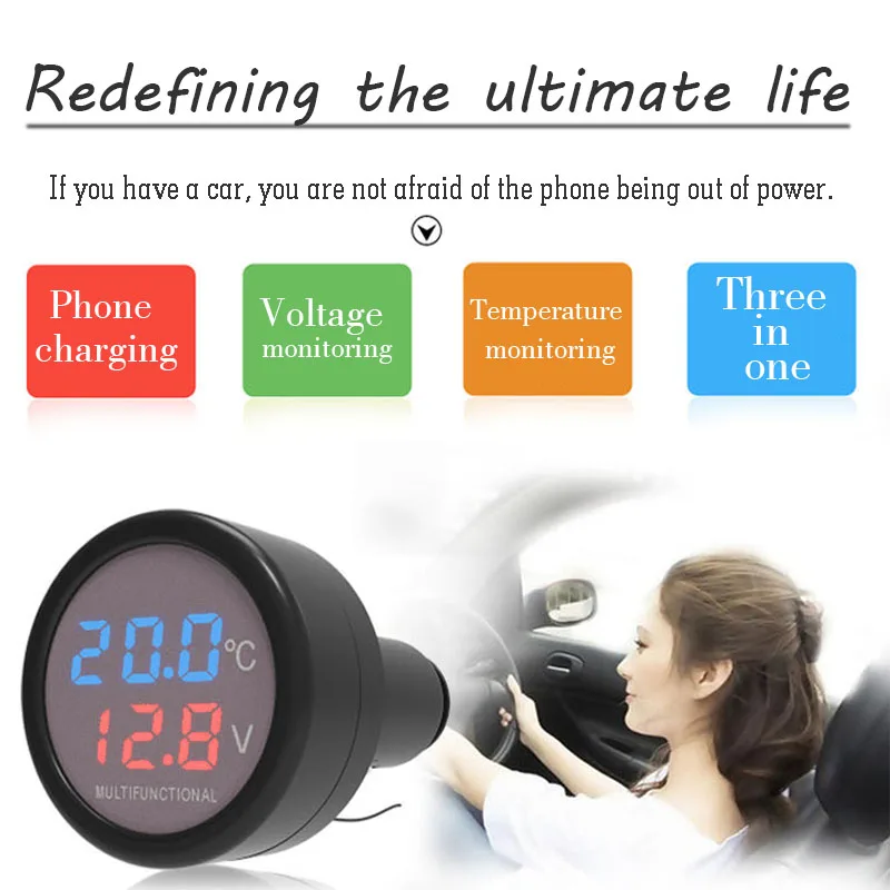 3В 1 Цифровой вольтметр, термометр, 12 V 24 V прикуриватель USB Автомобильное зарядное устройство