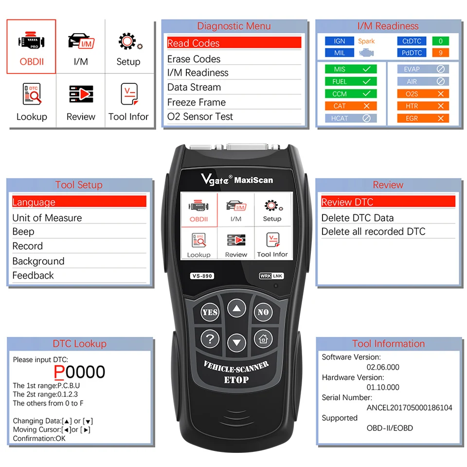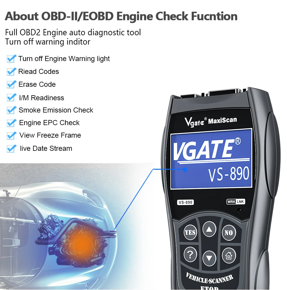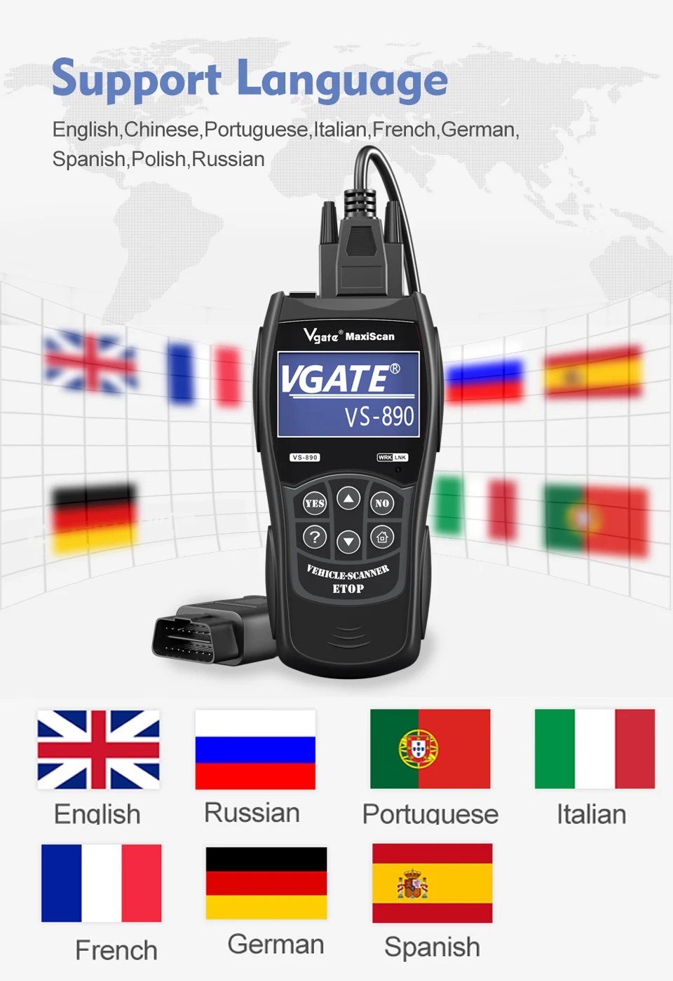 Vgate VS890 OBD2 автомобильный сканер анализатор двигателя автомобильные инструменты считыватель кодов автомобильный диагностический инструмент PK ELM327 1,5 v CR319 CR3001
