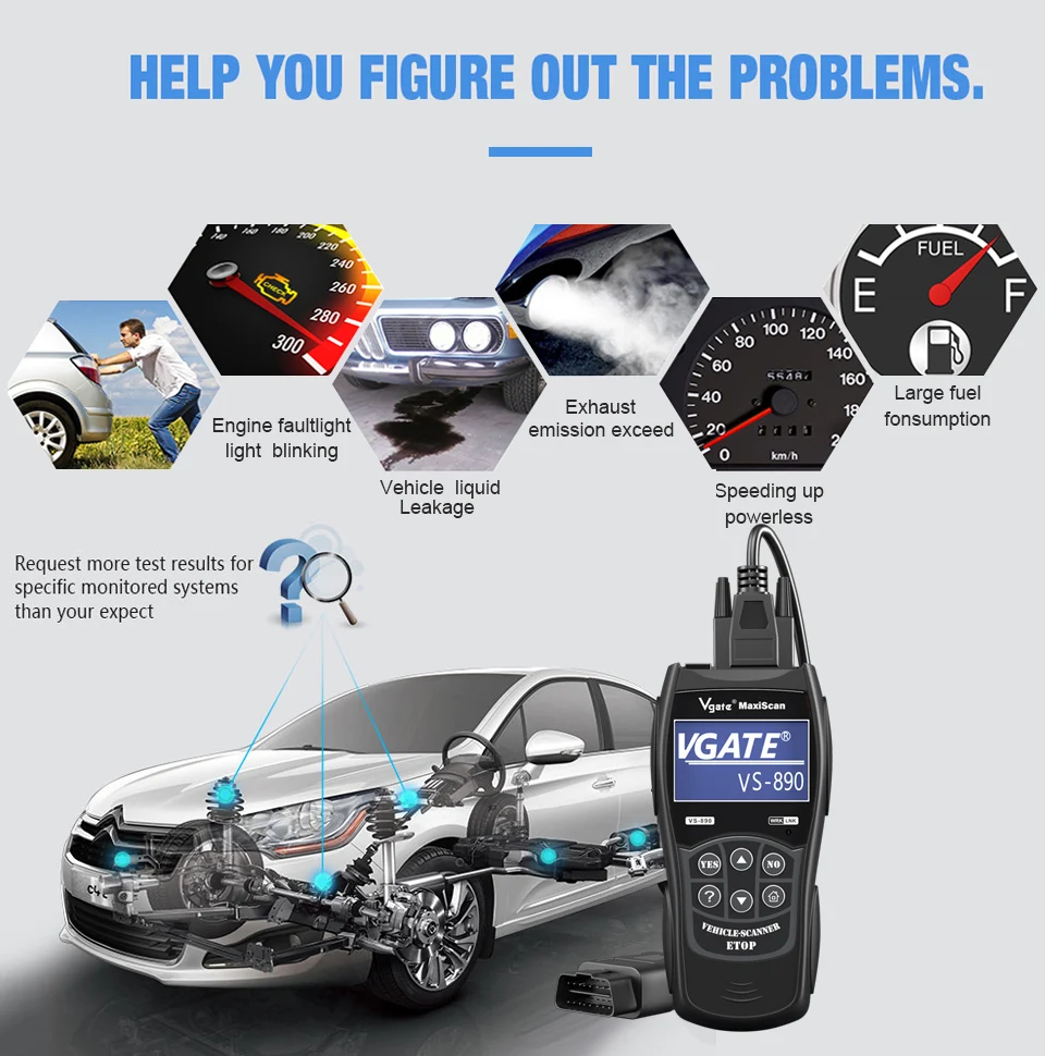 Полностью функциональный режим $01 ~ Режим $09.Поддерживает большое количество автомобилей, изготовленных 70 производителями.DTC включает общие (P0, P2, P3, B0, U0 и C0) и специфические для производителя (P1, P3, B1,B2 ,U1 и C1,C2,) коды.Детальная DTC Библиотека: DTCs объяснены легко понять слова, а не неясные jargons. Информация о помощи онлайн доступна для 80% всех DTCs, что показывает возможную причину кода.Вас беспокоят эти проблемы?