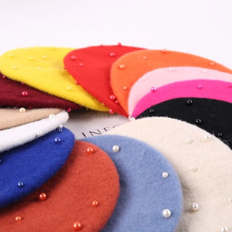 Фетровый берет для маленьких девочек, хипстерский шерстяной берет с жемчужинами, милая разноцветная шляпа художника для детей
