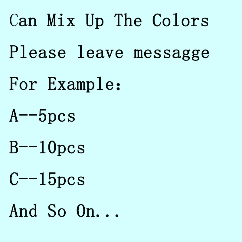 1. Цвет может быть смешан, пожалуйста, оставьте мне сообщение при размещении заказа.
