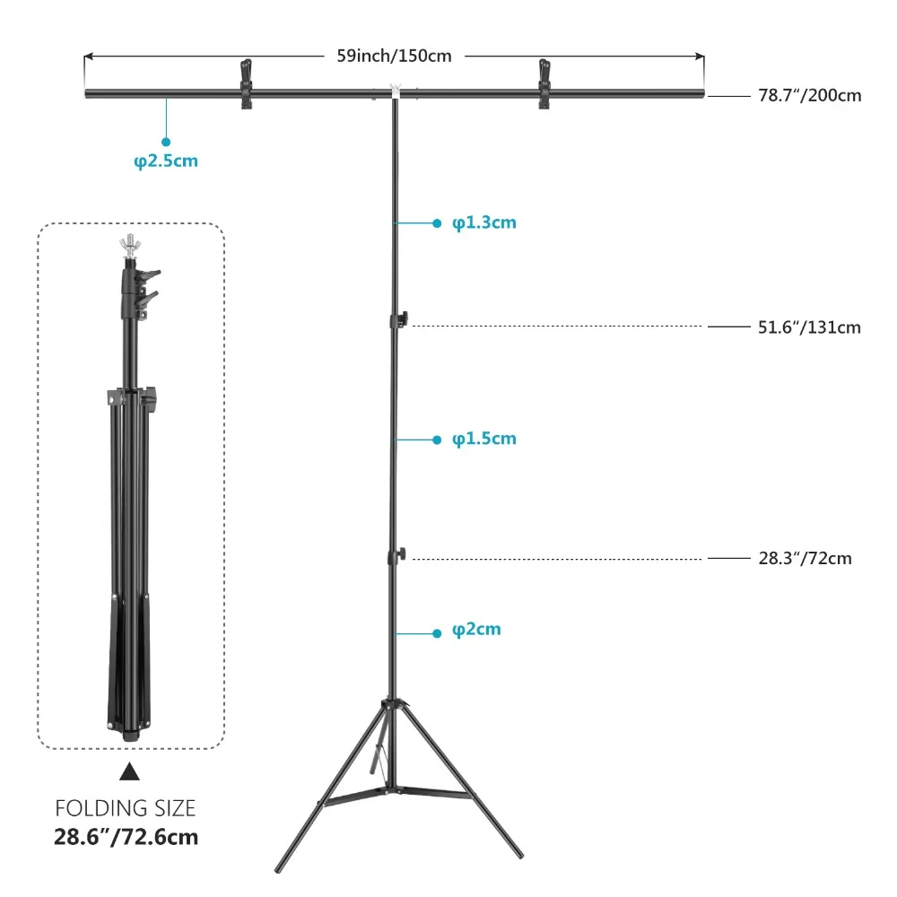 Примечание: 1. Высота штатива регулируется; В то время как ширина перекладины фиксируется; 2: фон не входит в комплект.