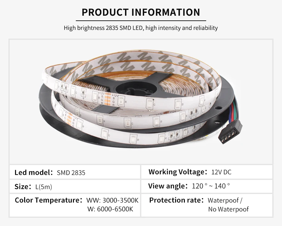 1. Размер: L(5 м) x W0.8cm 2. Цвет: белый/теплый белый/синий/зеленый/красный/желтый 3. Степень защиты водонепроницаемый и не водонепроницаемый 4. Рабочее напряжение: 12 В постоянного тока 5. Количество светодиодный: 60 Светодиодный s / m, 5 м/рулон (1 м/2 м/3 М/4 м без рулона) 6. Угол обзора: 120 ~ 140 7. Рабочая температура: от-20 до 50 8. Цветовая температура: WW: 3000-3500K W: 6000-6500K Пайка очень нормальная в электронных продуктах, никаких проблем с качеством.