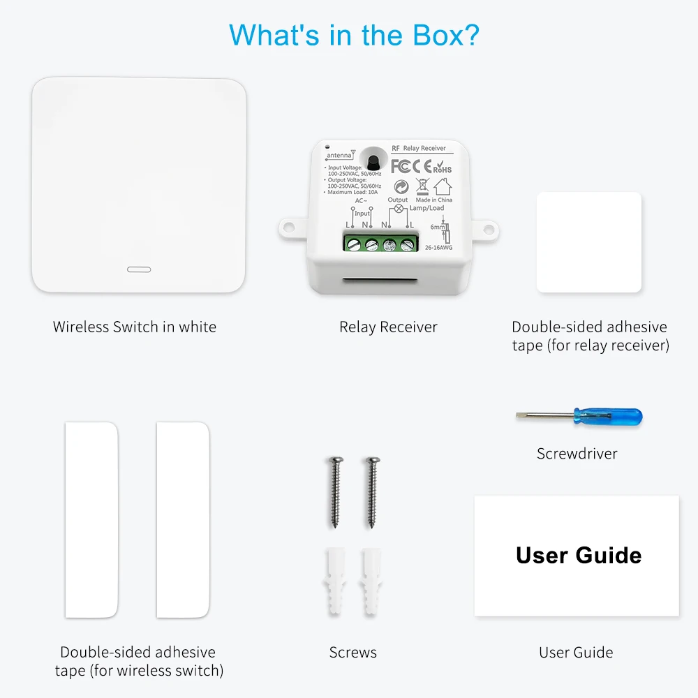 -Контроль кинетического переключателя, не требуется аккумулятор для беспроводного переключателя, сбора энергии -Управление приложением, бесплатное название приложения: Smart Life / Tuya -Голосовое управление, работает с Google Home, Amazon Echo Alexa.