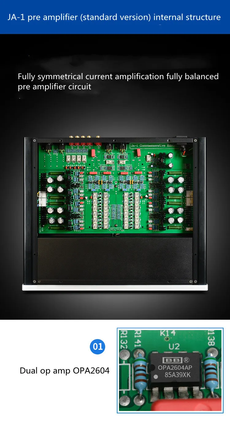 Передняя панель стандартной версии JA-1/JA-99C разработана с металлической проволокой, а передние и задние шкафы (включая открытый бронированный радиатор) изготовлены из материалов алюминиевой пластины, которые точно обрабатываются, изготовленный на токарном станке с ЧПУ.