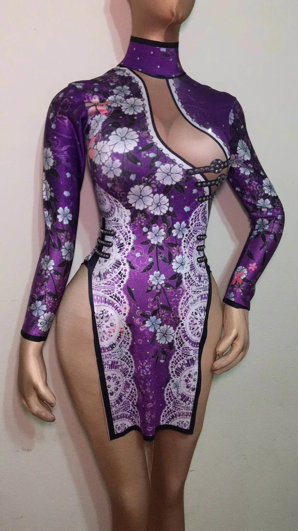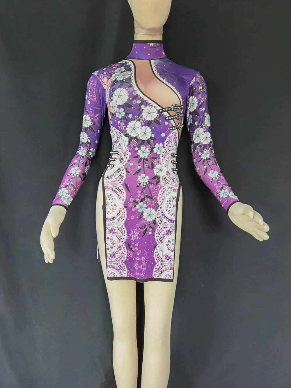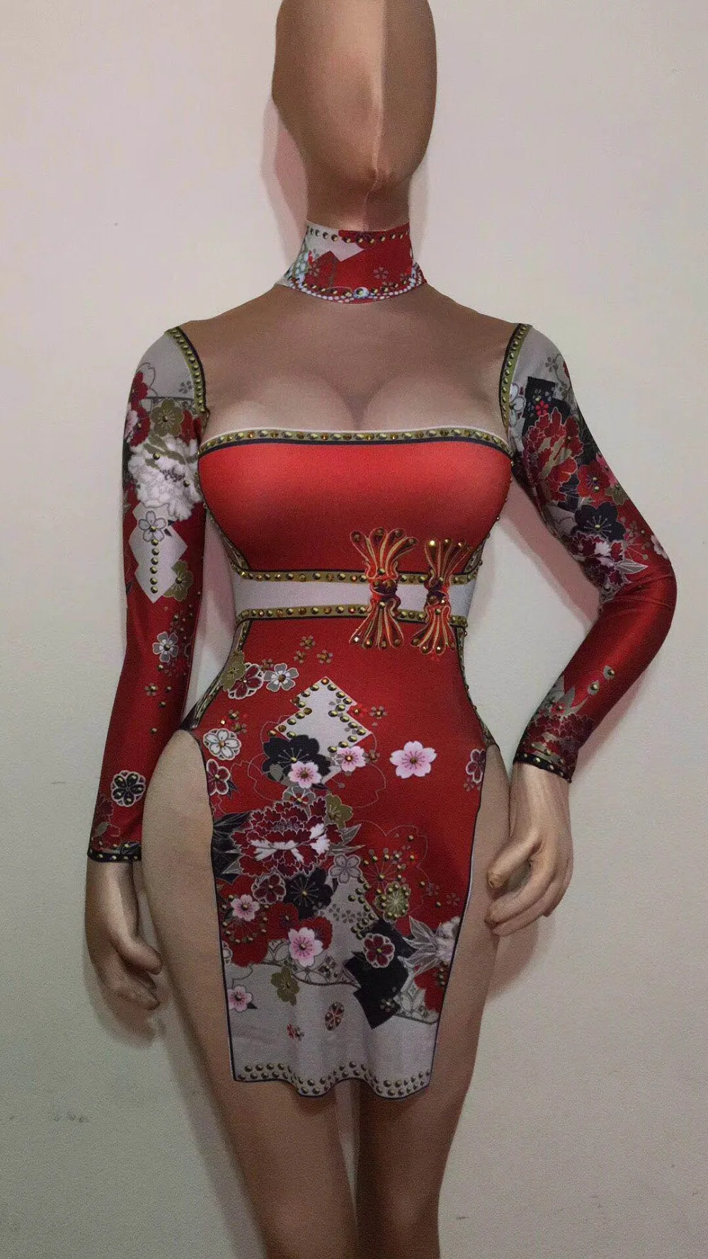 Женское платье-Чонсам с цветочным принтом Christia Bella, сексуальное облегающее платье телесного цвета, Клубное платье для сцены, костюмы с высоким разрезом для выступлений