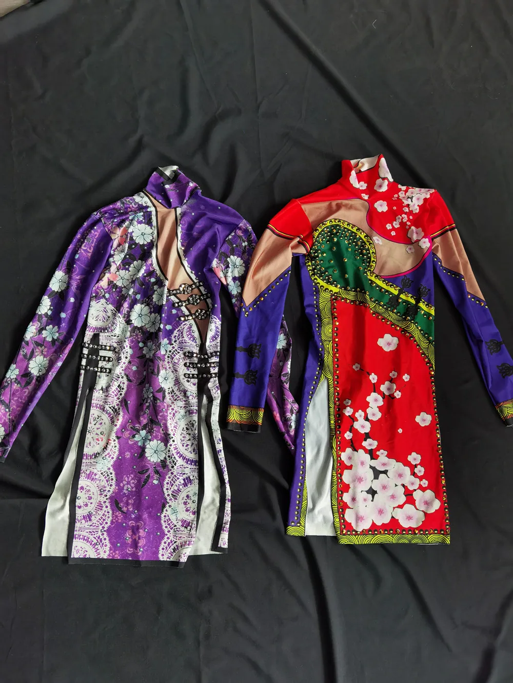 4. Материал: изготовлен из однотонного супер стрейчевого лайкры и спандекса, украшен кристаллами, стразы, бахрома и т. Д.