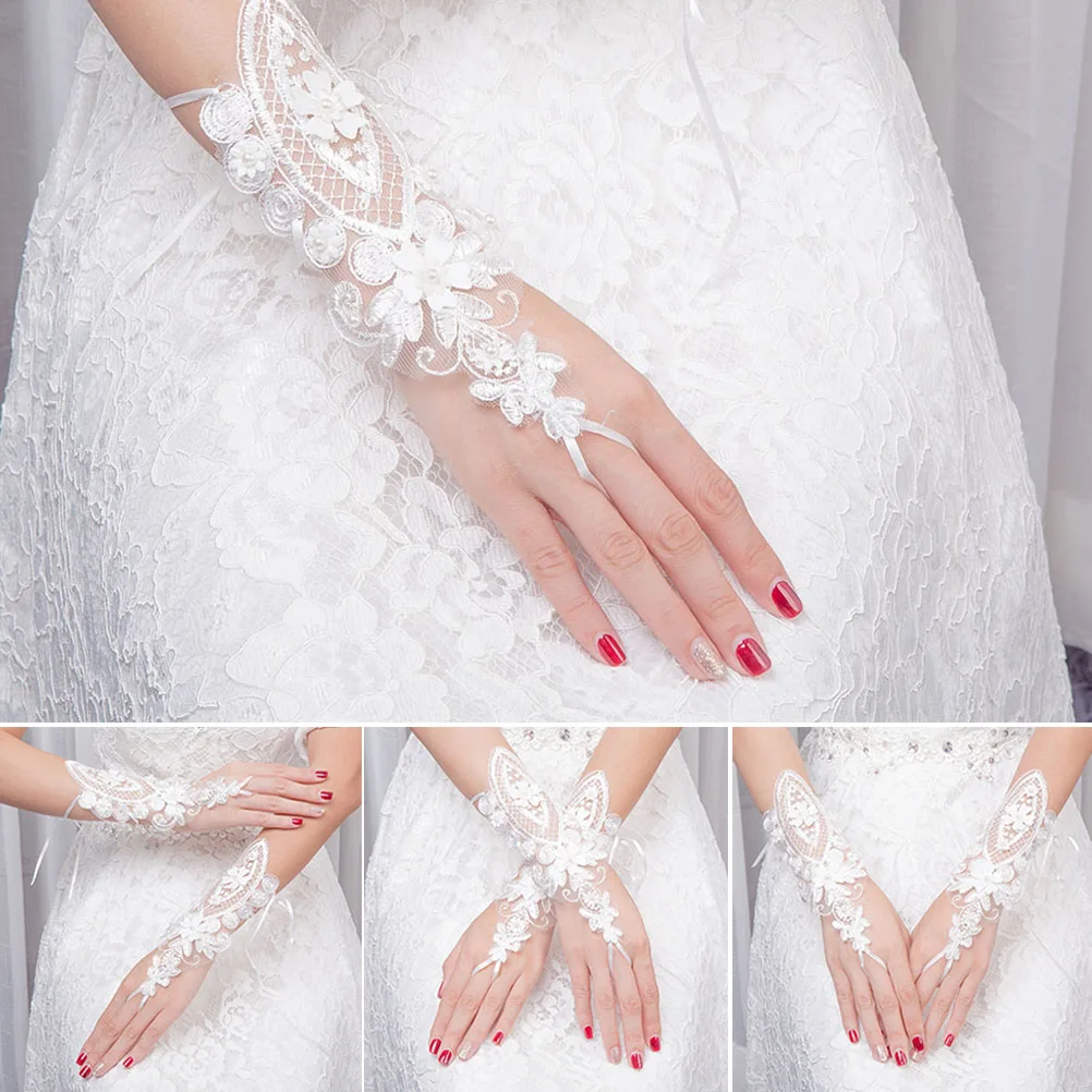 1 пара перчаток кружева невесты Мода выдалбливают цветок росы напалечник платье с перчатками Аксессуары свадебные украшения