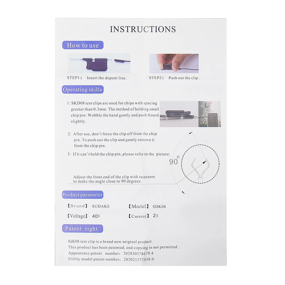 1. Нет необходимости в сварке, передача данных через зажим2. Диаметр зажима 0,13 мм3. Зажим покрыт изоляцией и без проводимости4самый маленький зажим для IC, и применяется для утилитарного патента и патента на внешний вид.Как использовать?Спереди длинная, конец длинный.(1). Конец зажима соединяется с линией.(2). Прижмите трубку зажима пальцами и нажмите назад на ладонь, микрозажим расширится.Информация о продукте: