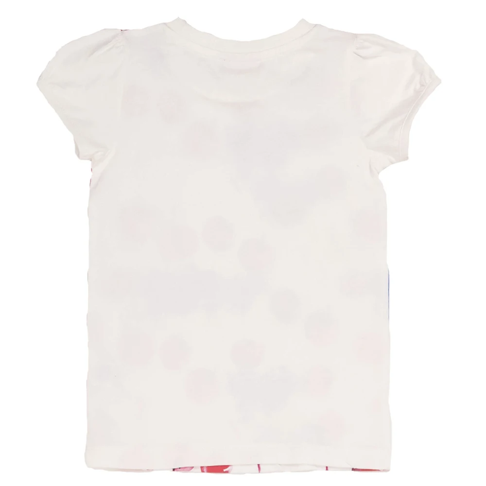 Футболка для девочки из мягкого натурального хлопка с коротким рукавом-фонариком и округлой горловиной. Модель белого цвета, яркие вишенки на передней части придают ей особое очарование. Такая футболка отлично сочетается с юбками, леггинсами и брюками и обязательно станет любимой обновкой для вашей модницы.