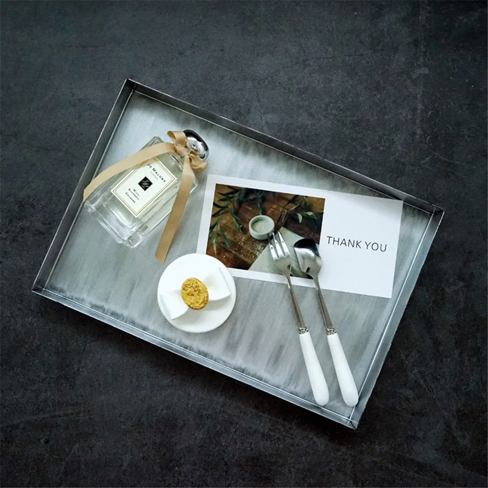 Серебряный металлический поднос для хранения Свадебный Настольный Декор фруктовый торт десертная тарелка прямоугольник ювелирных изделий дисплей лоток Органайзер