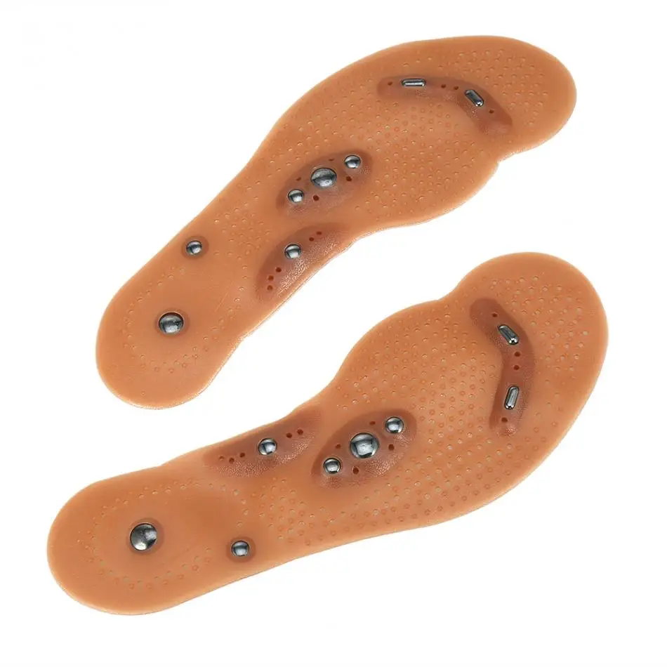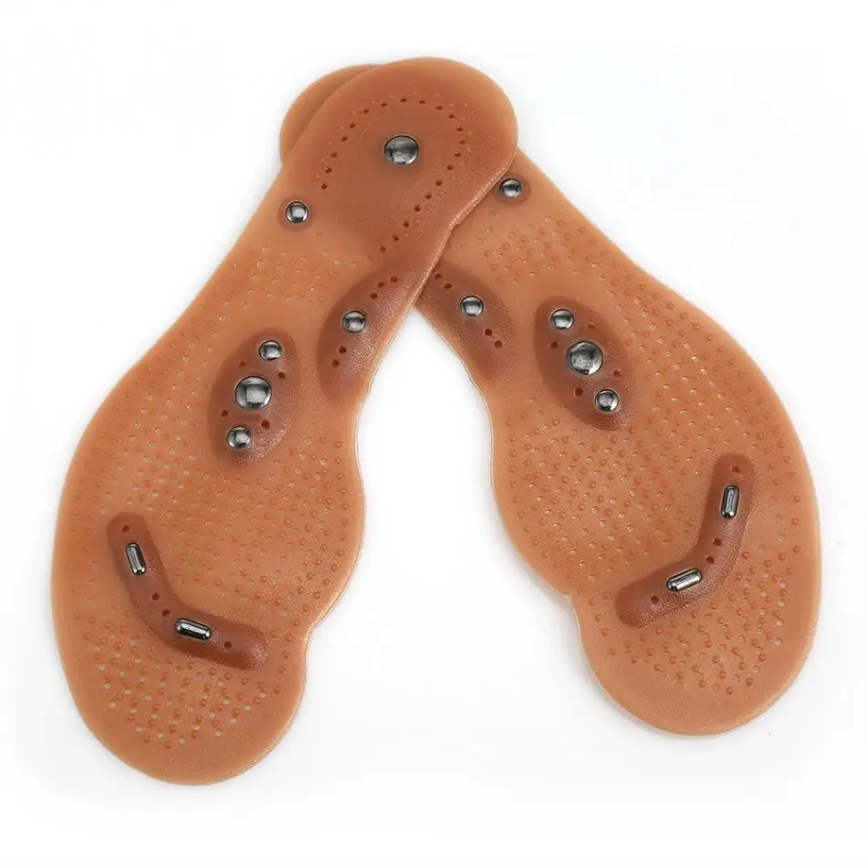 Изготовлен из высококачественного пластика, он удобный и прочный. Он принимает уникальный магнитный массаж ног терапии. Расположение магнита зависит от акупунктурных точек и зон отражения стопы. Он регулируется, его можно свободно разрезать в соответствии с размером стопы. Дезодорант, дышащий и устойчивый к поту. Эффективно способствует циркуляции крови и снимает усталость.