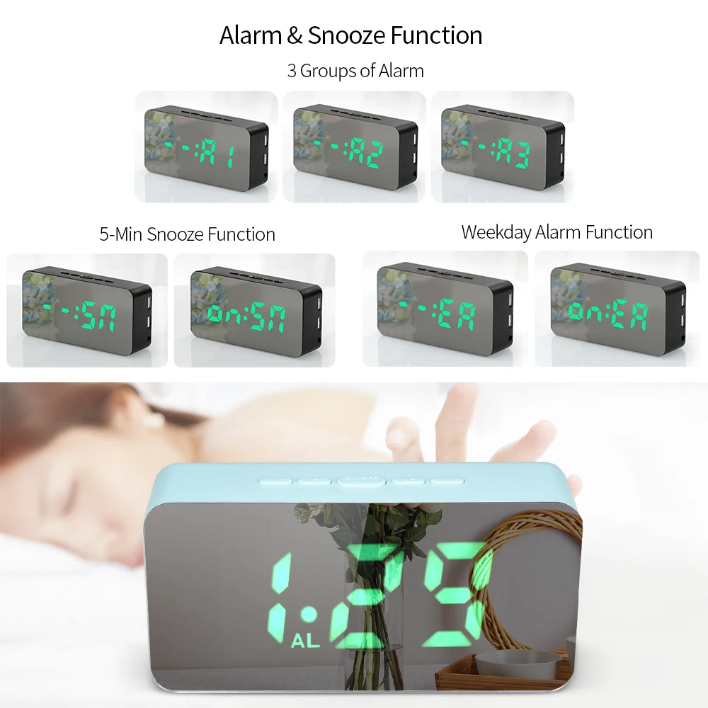 Настольный цифровой мини-будильник, RGB светодиодный зеркальный будильник, часы с питанием от USB/аккумулятора, термометр, регулируемая яркость, функция повтора