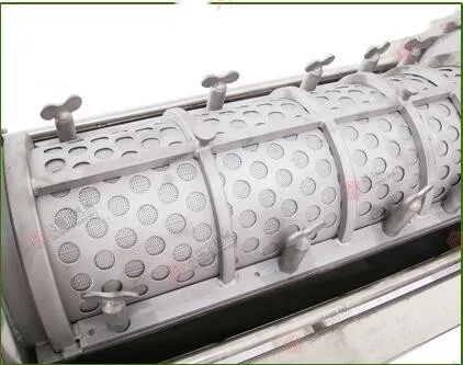 Машина в основном используется для извлечения фруктовых и овощных соков. Основные компоненты оборудования имеют спираль, которая постепенно увеличивается по направлению выхода остатка материала, в то время как шаг винта восстанавливается постепенно. Когда материалы толкаются спиралью, из-за уменьшения объема спиральной полости, материалы извлекаются. Спиральная соковыжималка в сочетании с функцией дробления фруктов и винтовой соковыжималки, она может удалить остатки.