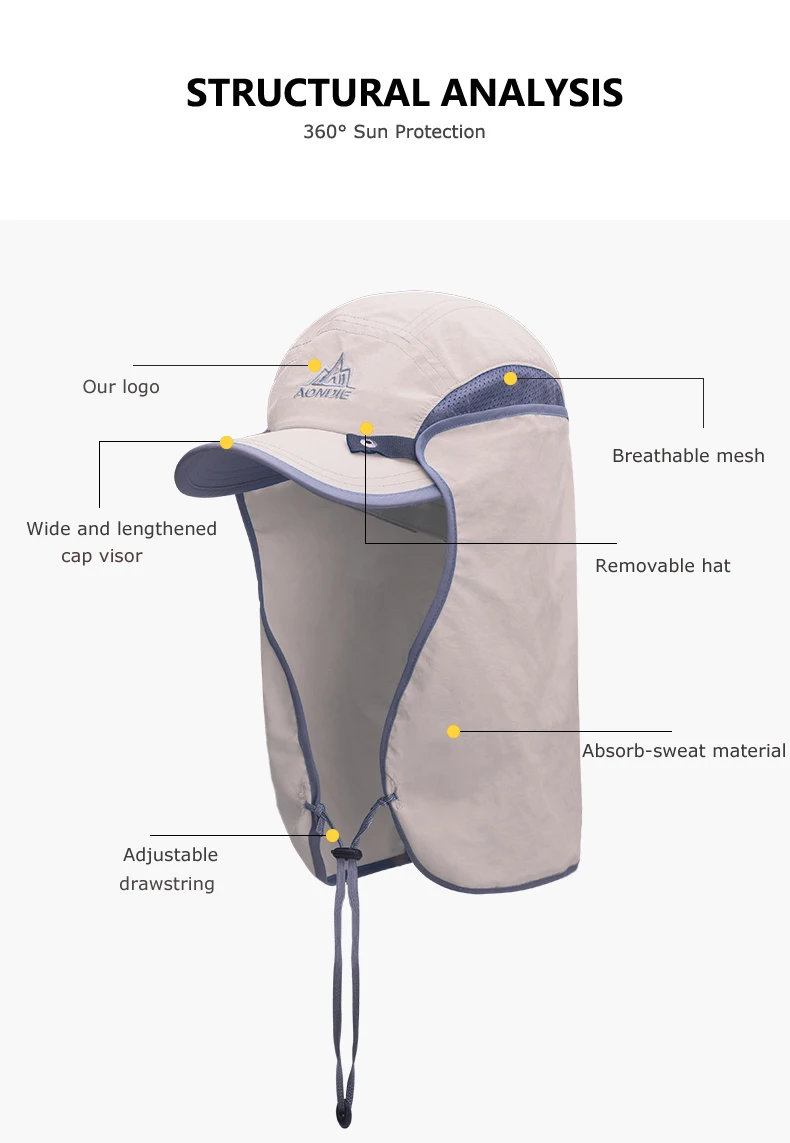 -Защита от солнца на 360 °: шляпа с клапаном, Солнцезащитная крышка UPF 50 + защита от солнца, чтобы сохранить нежную кожу на ушах шеи и лице в безопасности от вредных лучей, в целом, окруженная большой шалью, свободное удаление, солнцезащитный и дышащий. В дополнение к съемному щитку шеи и дышащей защиты лица, он защищает кожу от элементов и маска может защитить лицо от пыли. Новый солнцезащитный колпачок со съемными закрылками