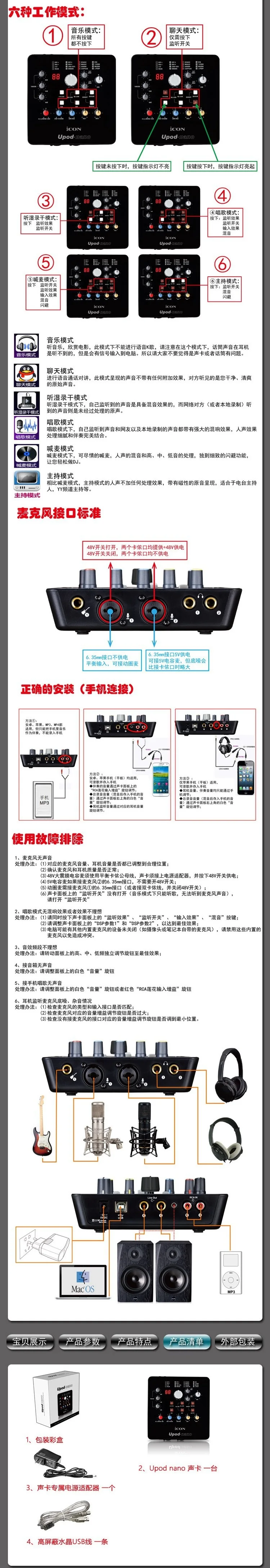 Описание PC-K850 Takstar:Особенности:* Φ34мм большая позолоченная мембранная капсула, широкая частотная характеристика, широкое динамическое, чистое и естественное качество звука* Принимает низкую фоновую схему обработки звука, чтобы удовлетворить высокий спрос на требования к записи* Высокочувствительный дизайн для получения насыщенных звуковых деталей и оригинального воспроизведения звука* Высокая производительность SPL эффективно предотвращает искажение перегрузки* Снабжен металлическим ударным креплением* Предоставляется алюминиевый чехол для переноски для удобной транспортировки и храненияСпецификация:• Капсула: 34 мм большая позолоченная мембранная капсула• Полярный узор: кардиоид• Частотная характеристика: 30 Гц-20 кГц• Чувствительность: -32 дБ ± 3 дБ (0 дБ = 1 В/Па при 1 кГц)• Эквивалентный уровень шума: ≤ 20dBA(IEC 581-5)• Пик SPL: 130 дБ (THD≤ 0.5% при 1 кГц)• Выходное сопротивление: 200Ω ± 30%(1 кГц)• Рабочее напряжение: фантомная мощность 48 в• Размер блока: 187*52 мм• Вес нетто: 529 гОписание звуковой карты ICON upod nano:Особенности:2. 2x2 аналоговых ввода/вывода полный дуплекс записи и воспроизведения3. Иконочный инновационный уникальный предусилитель микрофона с индивидуальным контролем усиления.4. + 48В оборудованы.5. Встроенный значок 16-DSP эффект с ручкой управления на верхней панели.6. 2 ручки регулировки параметров DSP на верхней панели.7. 2 аналоговых выхода на 1/4» ТРС разъемы или стереовыход на 3,5 мм разъем для телефона.8. Встроенный стерео RCA вход с индивидуальным контролем усиления9. Возможность использования в качестве автономного устройства с входом RCA и обработкой DSP.10. Кнопка функции аттенюатора, оснащенная для воспроизведения музыки, автоматически выцветает при подаче микрофона.11. Кнопки для управления микрофонным сигналом (сухой/влажной) записи на ПК.12. Кнопки оснащены для контроля сигнала мониторинга (сухой/влажный).13. Главный регулятор громкости на верхней панели14. 2 выхода для наушников на разъемах 1/4 "TRS с индивидуальным регулятором громкости15. Совместим с USB 2,0 и с питанием от шины USB16. Подключи и работай, и установка драйвера не требуется.17. Совместимость с Mac OS (Intel-Mac) и Windows XP, Vista (32-бит/64-бит), Windows 7 (32-бит/64-бит) И Windows 8 (32-бит/64-бит)18. Полный дуплекс, одновременная запись/воспроизведение