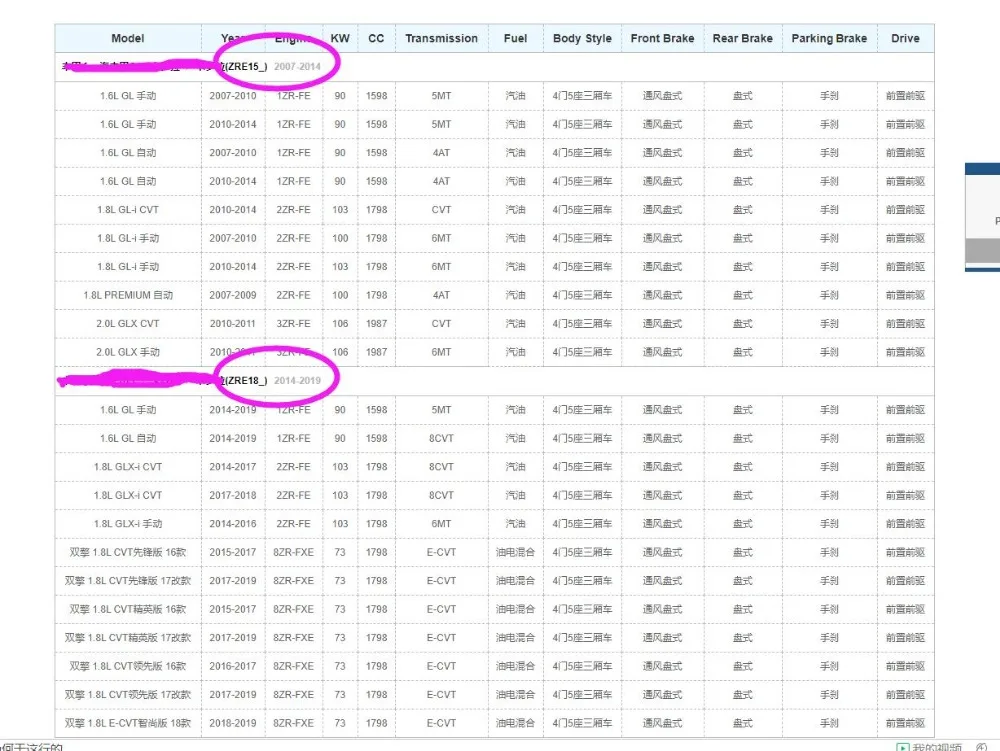 Для TOYOTA COROLLA 2007-2019