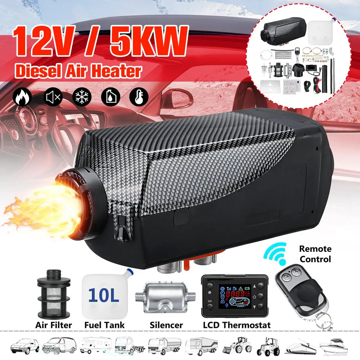 12V 5KW Дизельный подогреватель воздуха комплект черный углеродное волокно фактура для грузовика лодка прицеп для легковых автомобилей