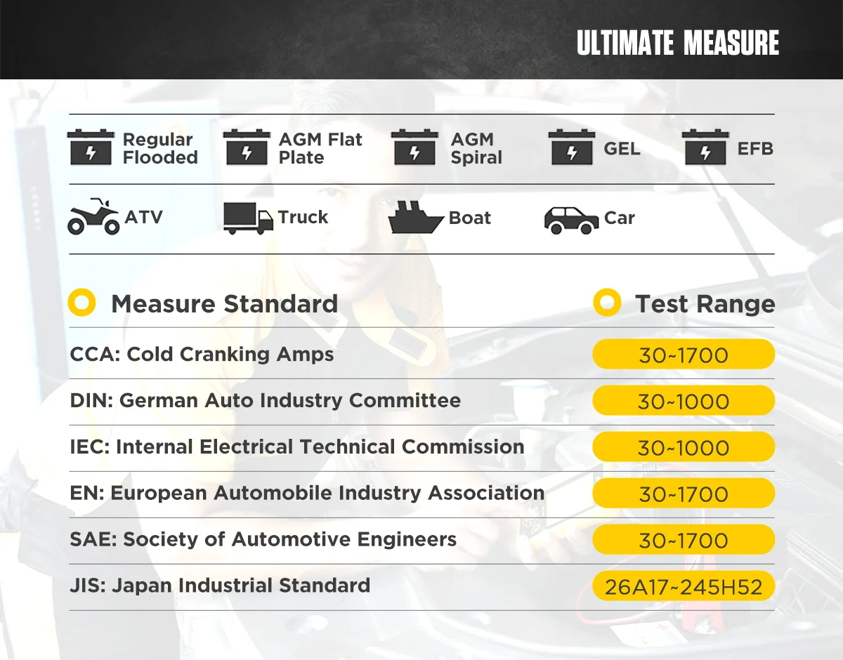 [Батарея и подзарядка и максимальная нагрузка]: не только удобно для владельцев автомобилей использовать его для ежедневного обслуживания, но это также может помочь pros проверить напряжение батареи под нагрузкой через испытание нагрузки. С помощью этого тестера батареи вы можете проверить общее состояние батареи и провести полный тест на зарядку системы. [Профессиональный и безопасный]: Стандарты тестирования включают большинство стандартов батареи в мире, CCA IEC EN DIN SAE JIS и другие виды, которые охватывают от 30- 1700 CCA. С полярностью обратной защиты, аккумулятор и устройство не будут повреждены. [Цветной экран HD]: В отличие от большинства монохромных ЖК-экранов на рынке, тестер нагрузки батареи AUTOOL BT460 оснащен цветным hd-экраном, который легко читается даже при прямых солнечных лучах. [Поддержка нескольких языков]: доступны 12 языков. Доступен на английском, испанском, немецком, французском, русском, португальский, китайском, турецком, русском, японском, тайском и корейском языках. Другие языки могут быть настроены. [3-летняя гарантия]: за ущерб, причиненный не-человеческими факторами, мы обещаем отправить детали бесплатно в течение 3 лет. Для любых потребностей, вы тепло приветствуем связаться с нами, и мы свяжемся с Вами как можно скорее в течение 24 часов.
