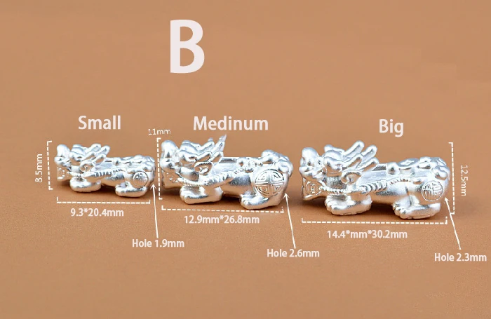 Маленький: 8*14,8 мм отверстие 1,4 мм Высота 7,4 мм Medinum:11*24 мм отверстие 2,3 мм Высота 10 мм Большой: 13,5*29,3 мм отверстие 2,1 мм Высота 12,5 мм