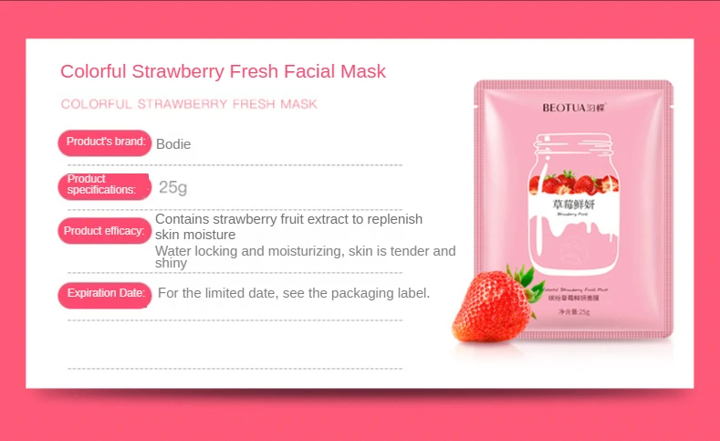 Особенности: Содержит различные Фруктовые экстракты Восстанавливает водно-жировой баланс кожи Предотвращает сухость кожи Улучшение эластичности кожи Спокойных темно-желтого цвета кожи Увлажнение, сопротивление окислению и задержке старения Мощность растений не может быть занижена Растительный Экстракт обладает мягкими свойствами и эффективно украшает кожу лица. Название продукта: клубника, Черника и авокадо маска Вес нетто: 30 грамм Кол-во: 10 шт. Советы: 1. Предложение для хранения: храните маску в прохладном и сухом месте и Избегайте попадания прямых солнечных лучей. 2. Людям с травмами кожи не рекомендуется использовать маски. 3. Люди с чувствительной кожей должны иметь небольшой тест области на тыльной стороне рук или ушей перед использованием.
