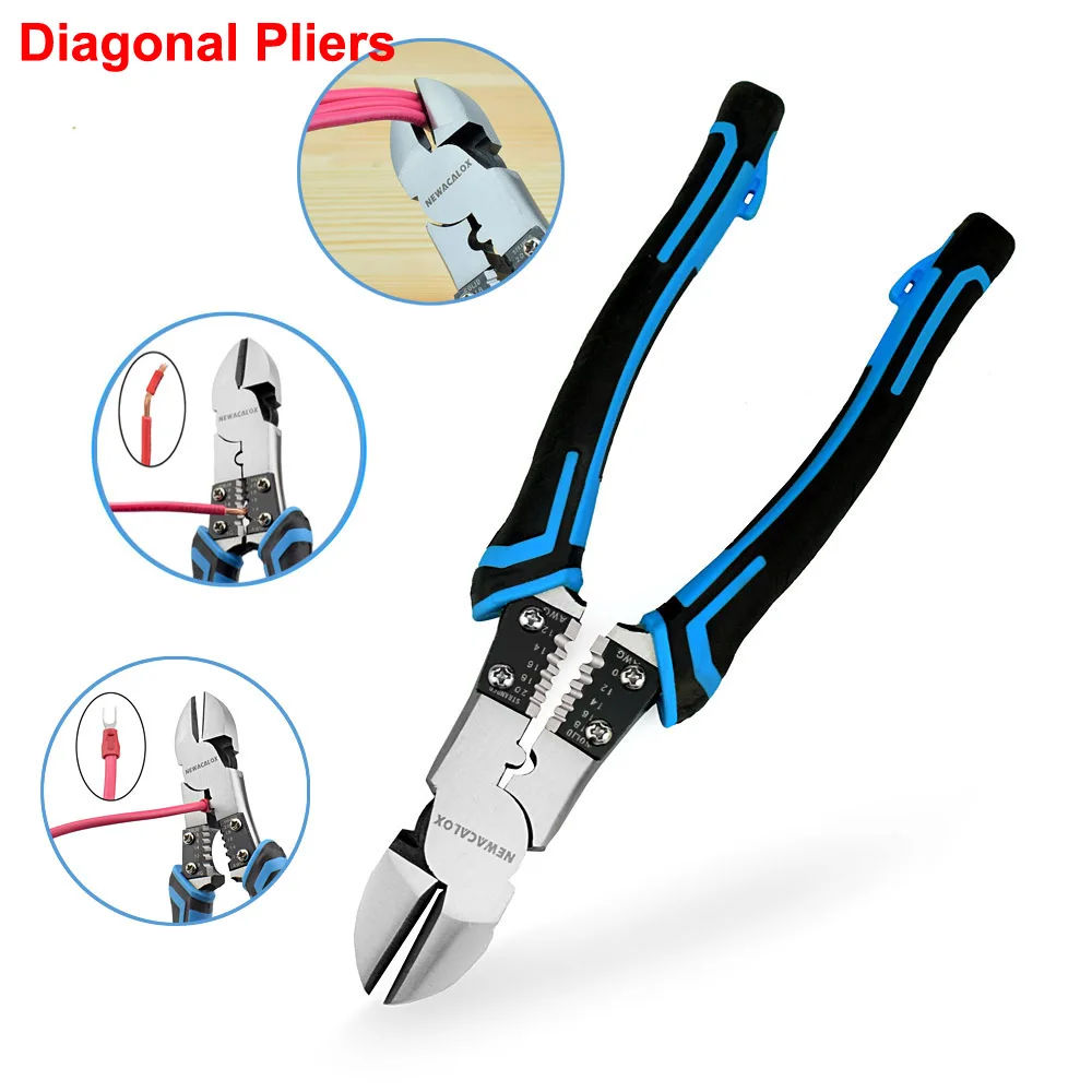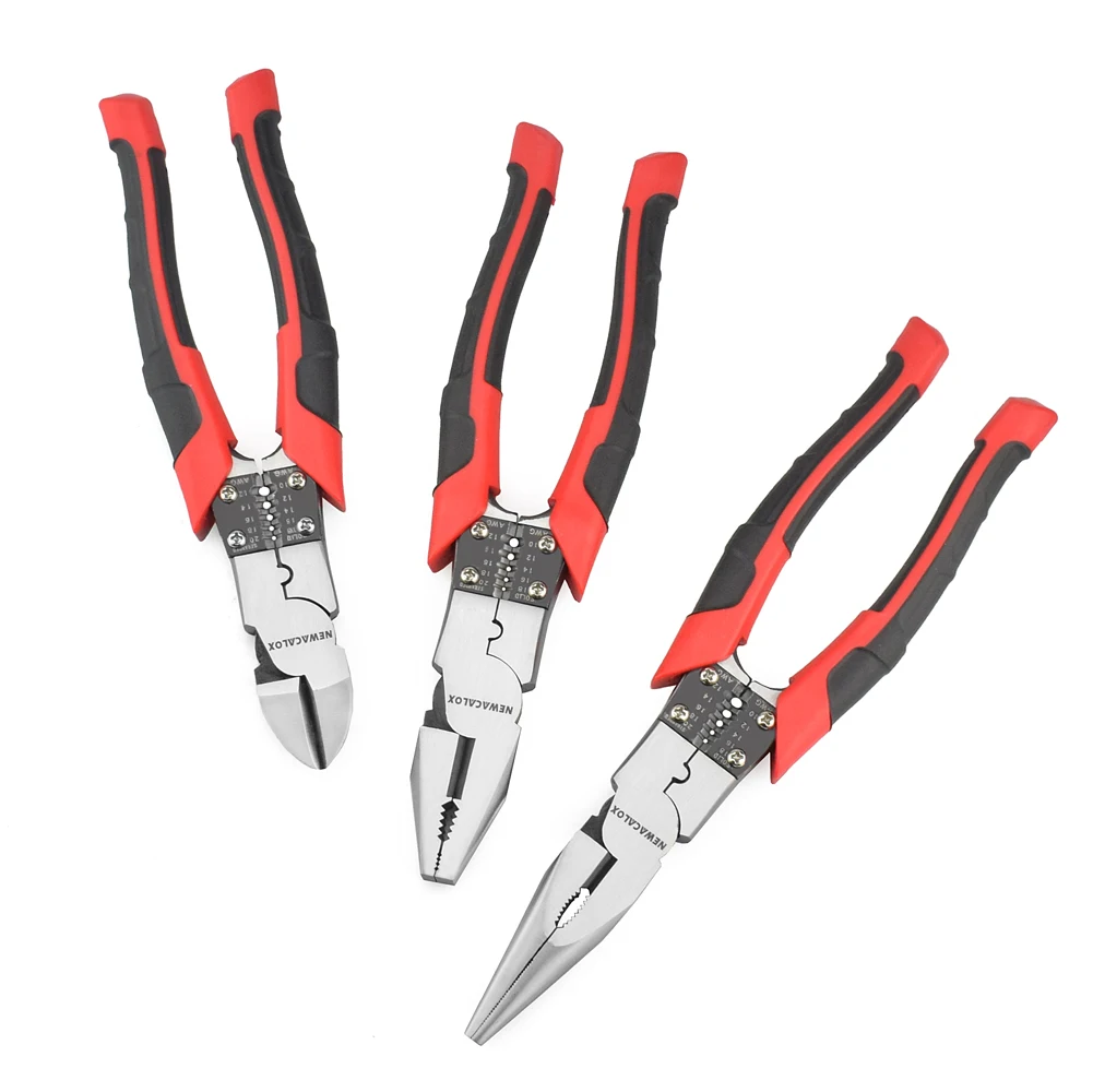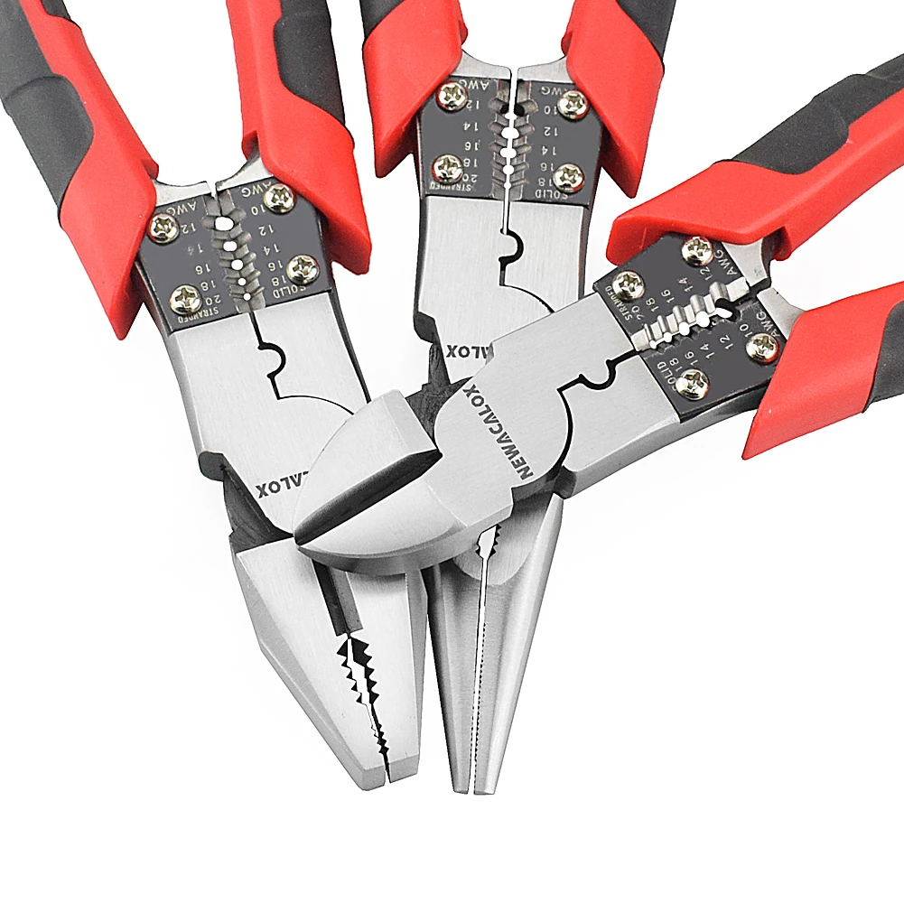 Набор многофункциональных плоскогубцев NEWACALOX 8 дюймов, комбинированные плоскогубцы, щипцы для зачистки/кусачки/резак, плоскогубцы для тяжелых условий эксплуатации, диагональные плоскогубцы, ручные инструменты