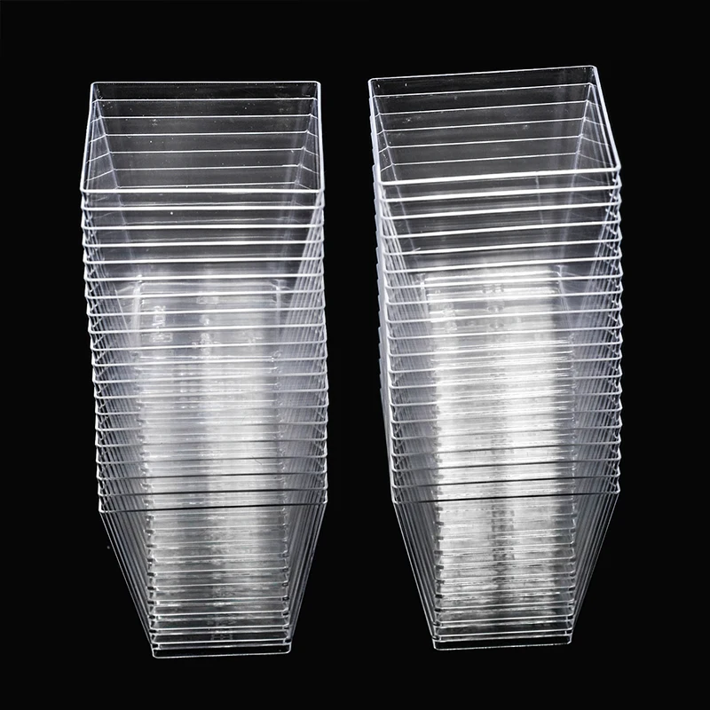 Спецификация: Материал: пластик Цвет: прозрачный Размер: Верхний диаметр: 70 мм/2,75" Дно Диаметр: 45 мм/1,77" Высота: 65 мм/2,5" Емкость: 7 унций/210 мл В комплект входит: 40 десертных стаканчиков