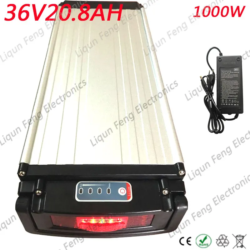 36 V задний стеллаж для выставки товаров Батарея е-байка 36В 20AH литий Батарея е-байка 36В Электрический велосипед Батарея с Алюминий чехол BMS 42В 2A Зарядное устройство Бесплатная доставка.